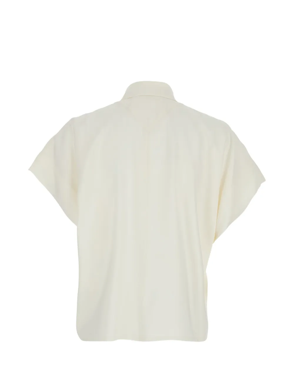 Белый цвет, застежка на пуговицы, короткие рукава, классический воротник, свободный крой