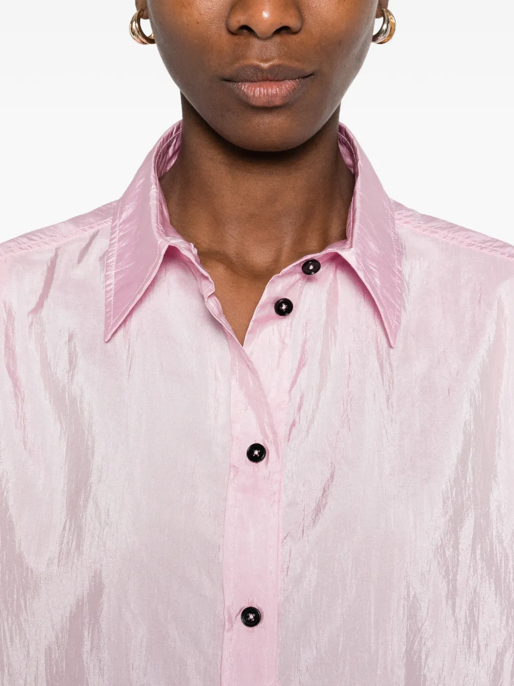 Розовый цвет "роза", застежка на пуговицы, длинные рукава, классический воротник