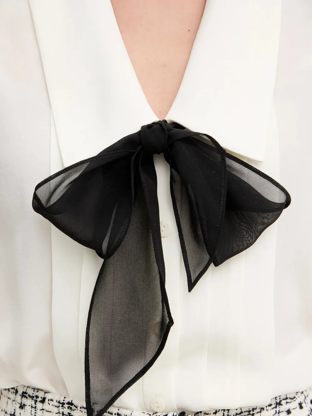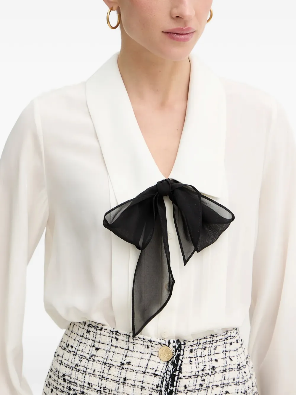 Нейтральный V-образный вырез, бантик, длинные рукава, манжеты на пуговицах