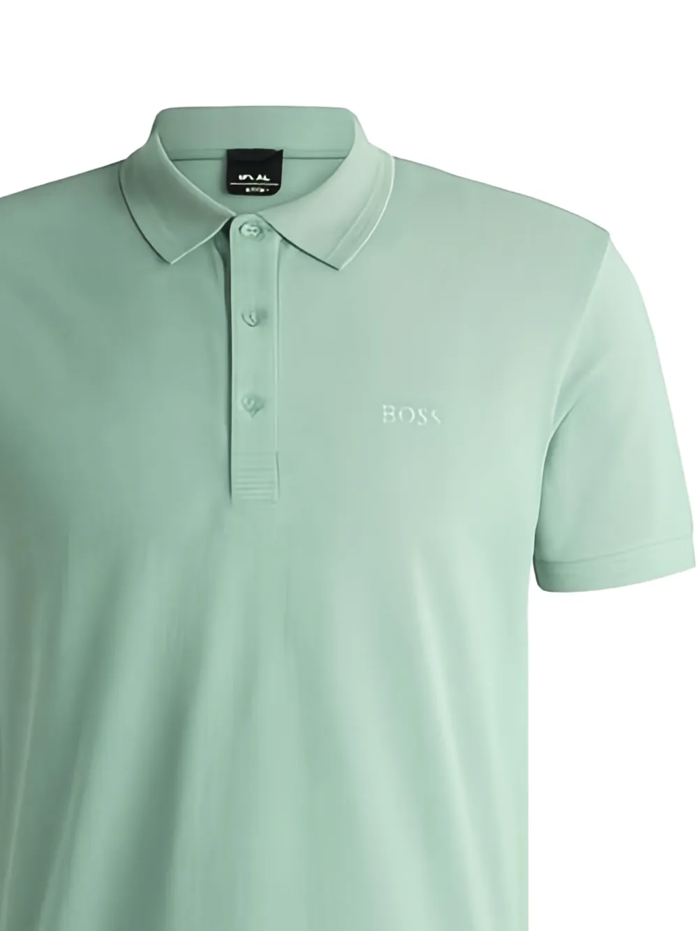 Светло-зеленая хлопковая рубашка-поло с короткими рукавами, застежкой на пуговицы спереди, отложным воротником и тональной вышивкой-логотипом