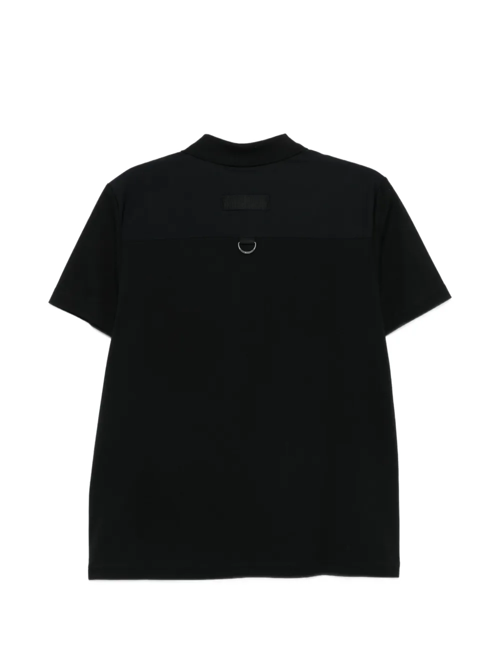 Черная футболка-поло с короткими рукавами, нагрудным карманом с нашивкой-логотипом и деталью-молнией, отложным воротником