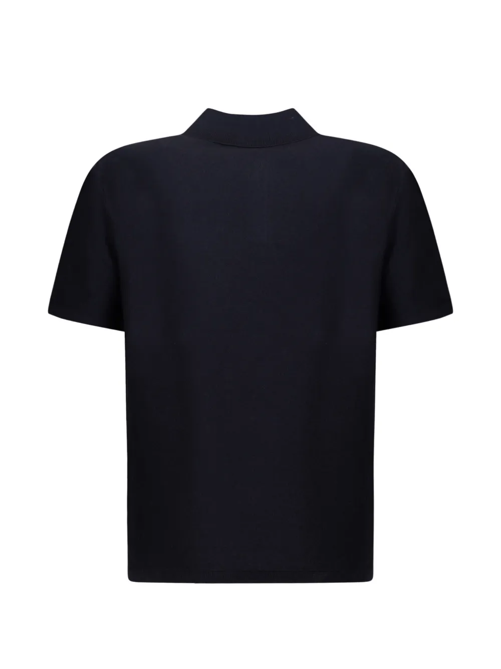 Синий цвет, нагрудный карман с нашивкой, застежка на пуговицы до половины, классический воротник, короткие рукава