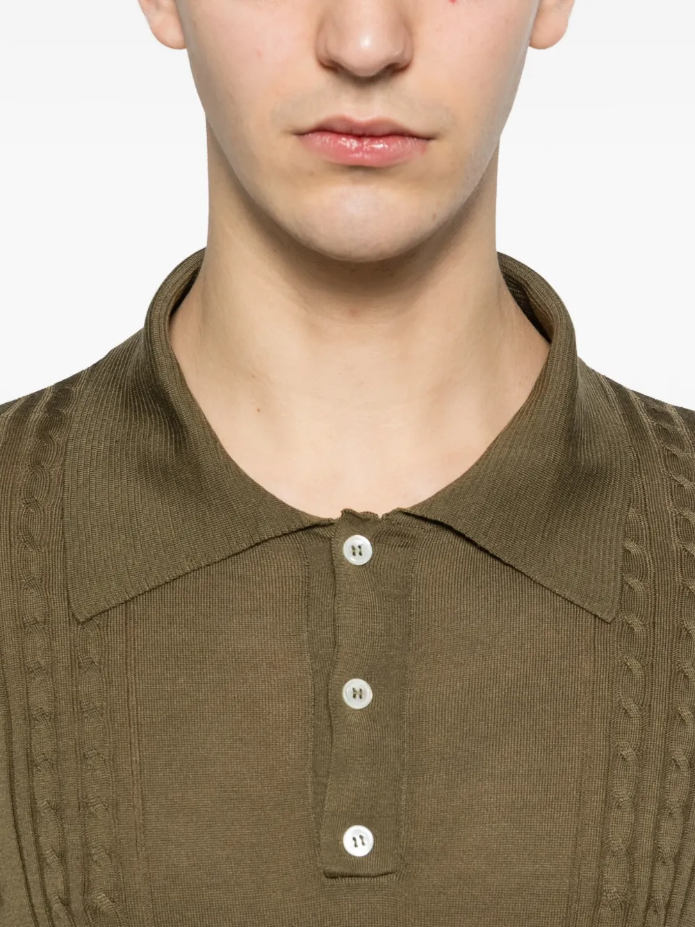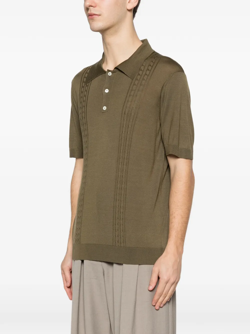 Зеленая застежка на пуговицы, вязаная фактура, отложной воротник, короткие рукава, текстурированные детали