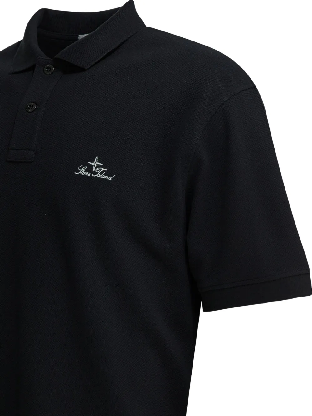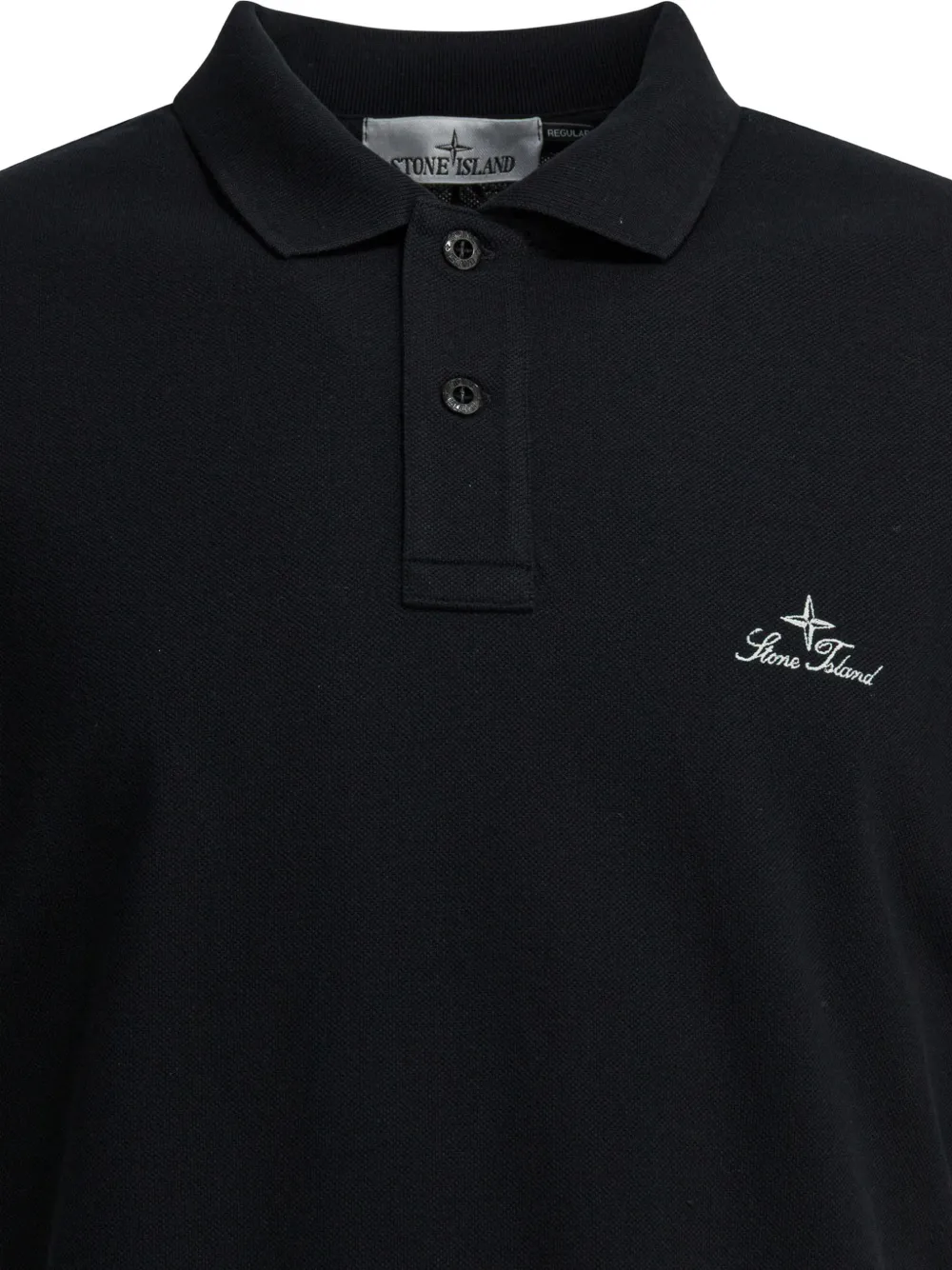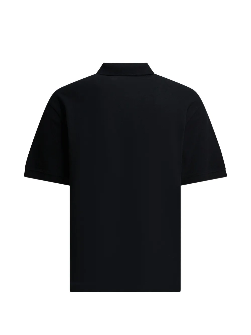 Черная футболка-поло с логотипом, застежкой на пуговицы спереди, короткими рукавами и воротником-«поло»