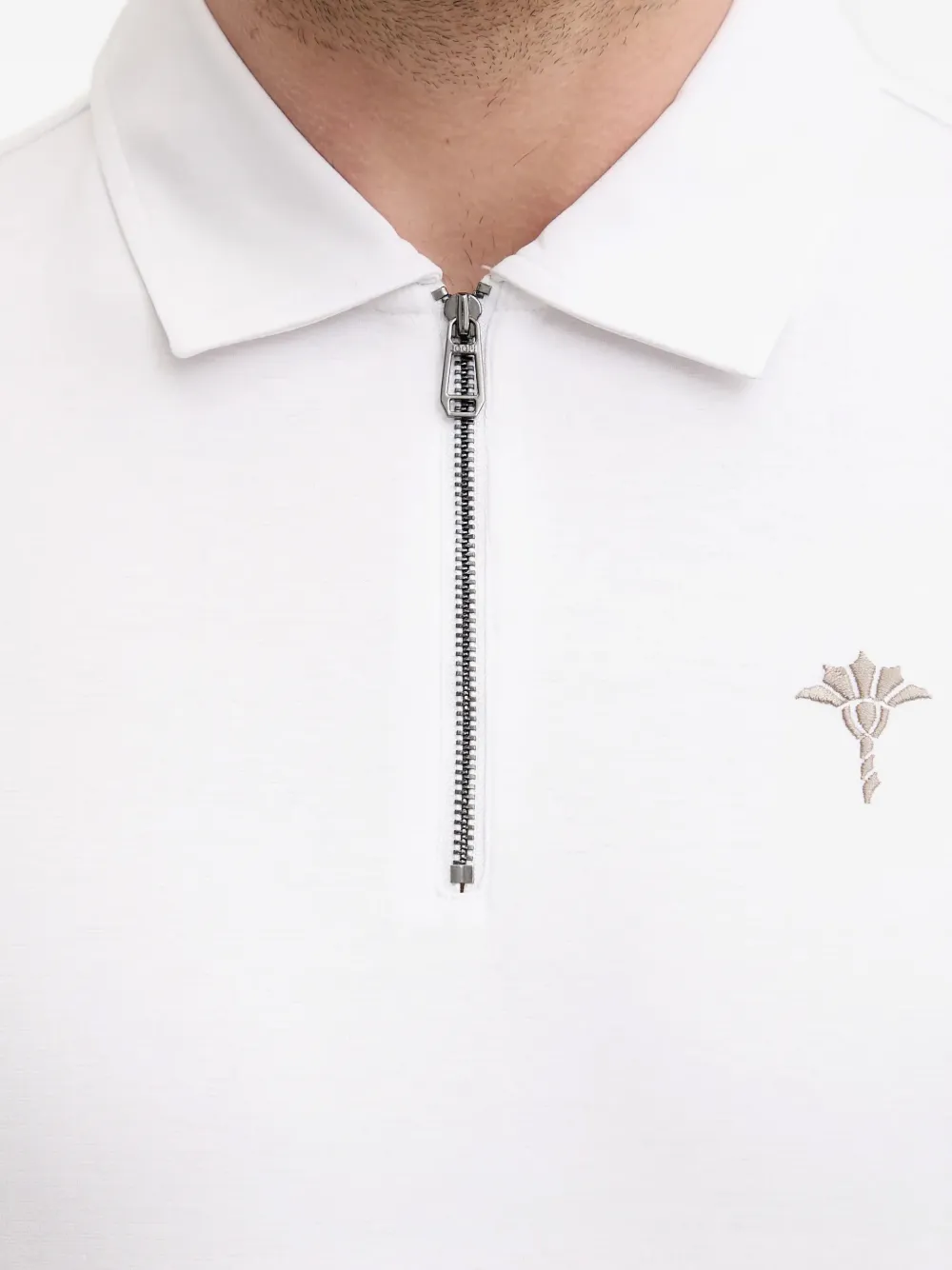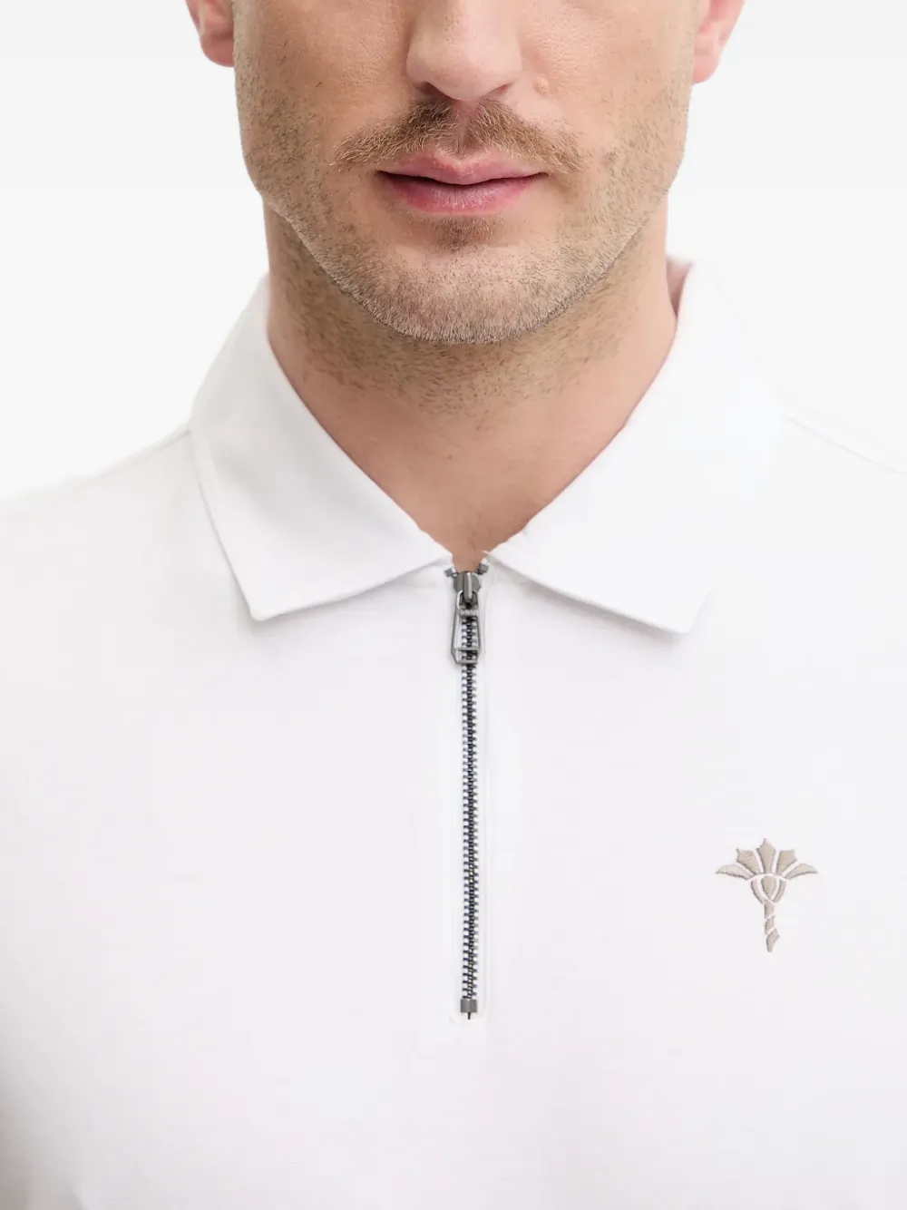 Белая вышивка с логотипом, застежка-молния спереди, короткие рукава, трикотажные манжеты