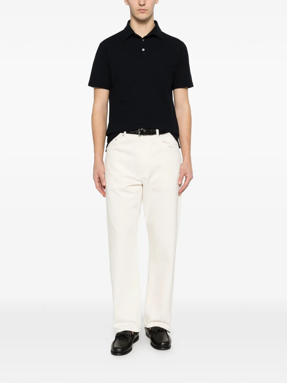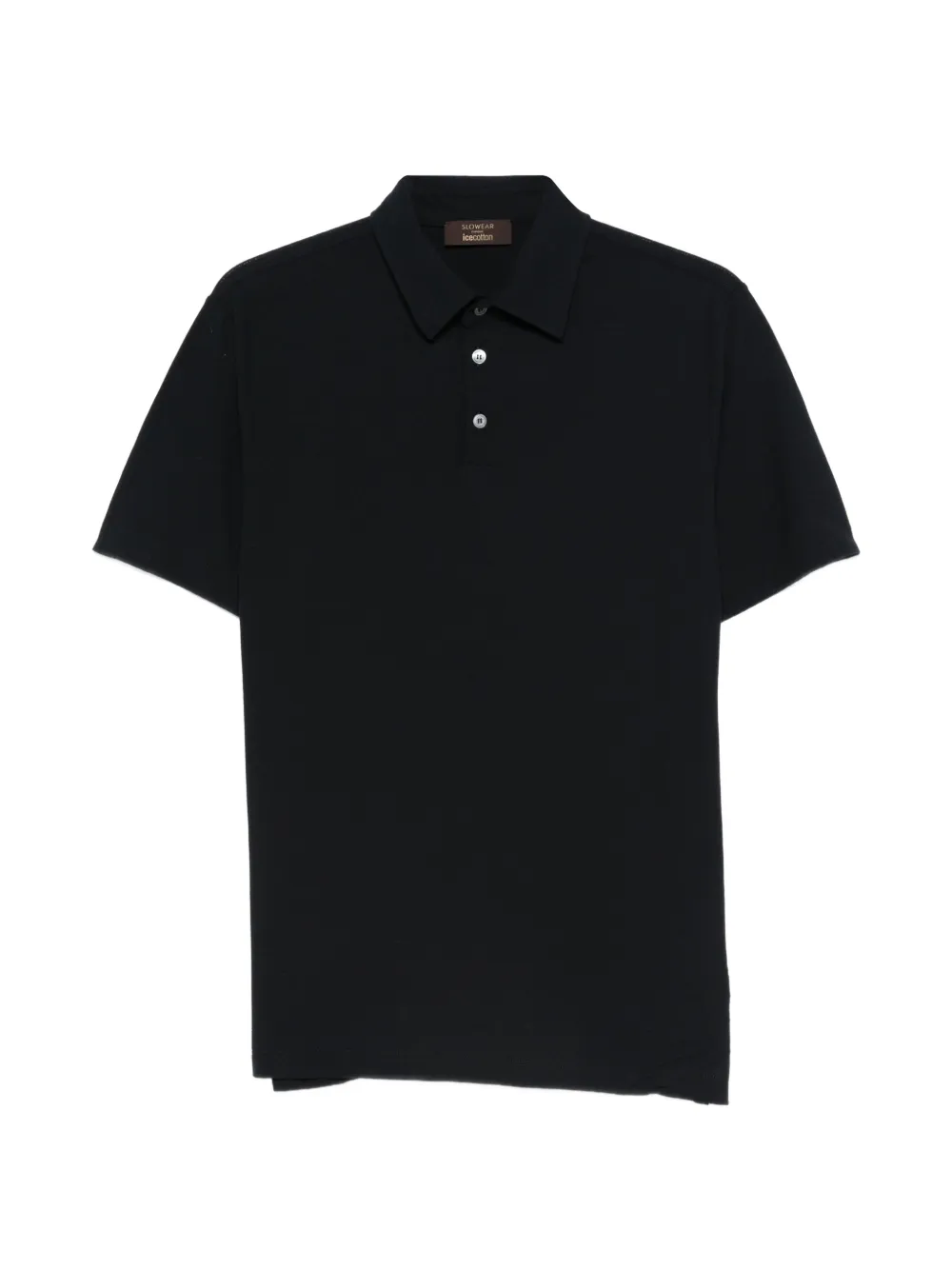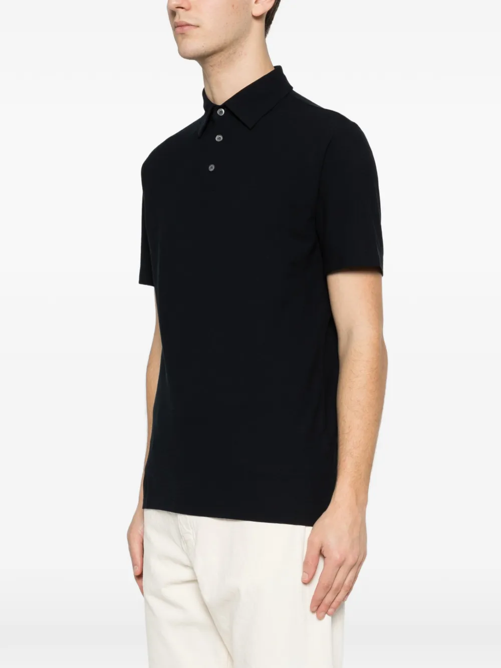 Синее поло с короткими рукавами, воротником и застежкой на пуговицы спереди