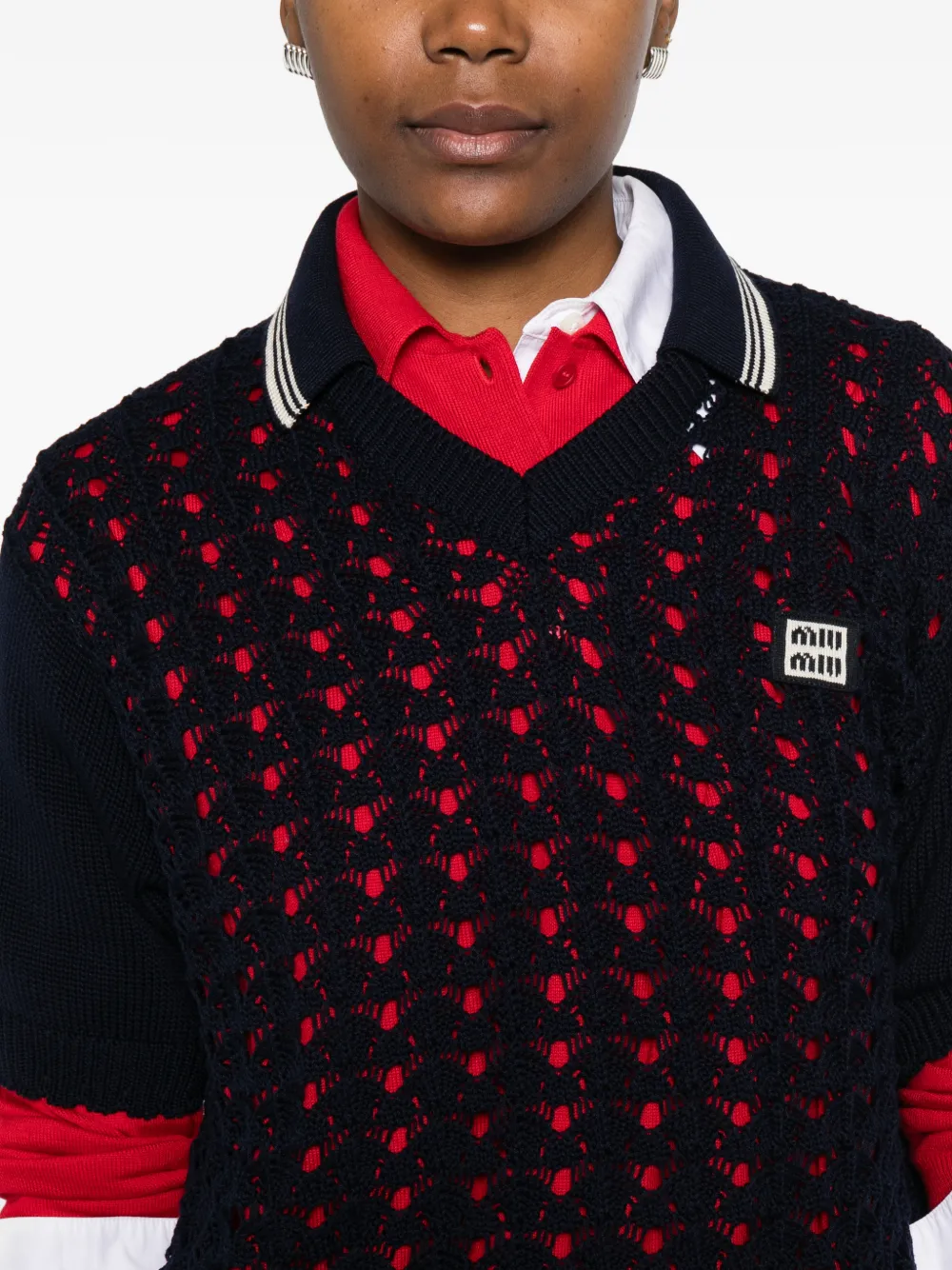 Вязаное полосатое поло Miu Miu, синий