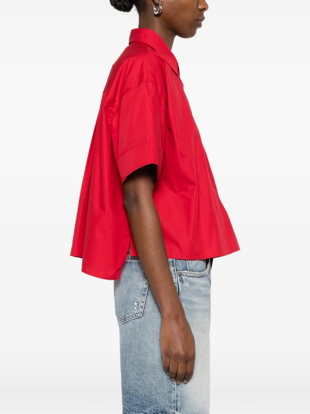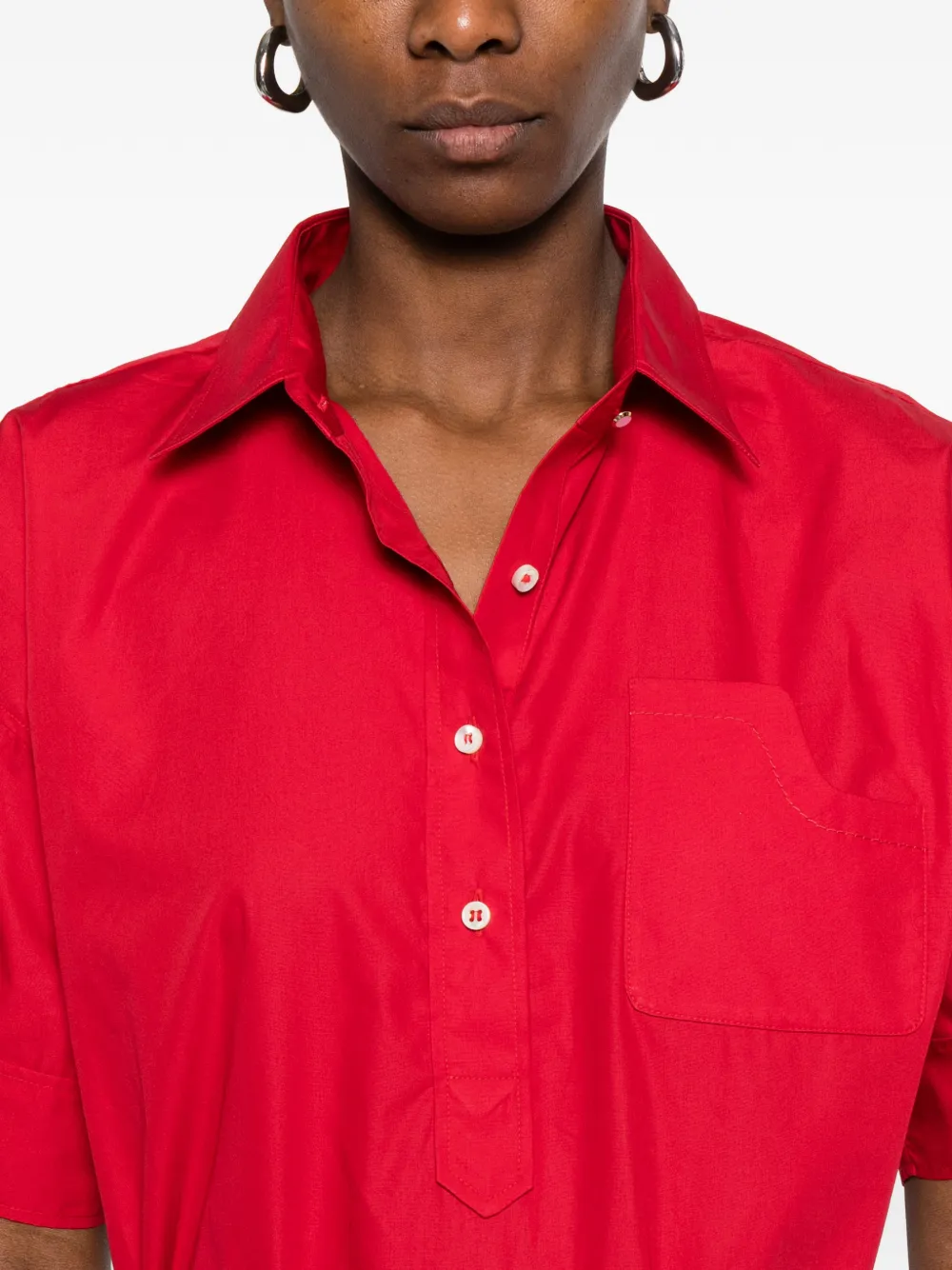 Красный с нагрудным карманом, застежкой на пуговицах и короткими рукавами