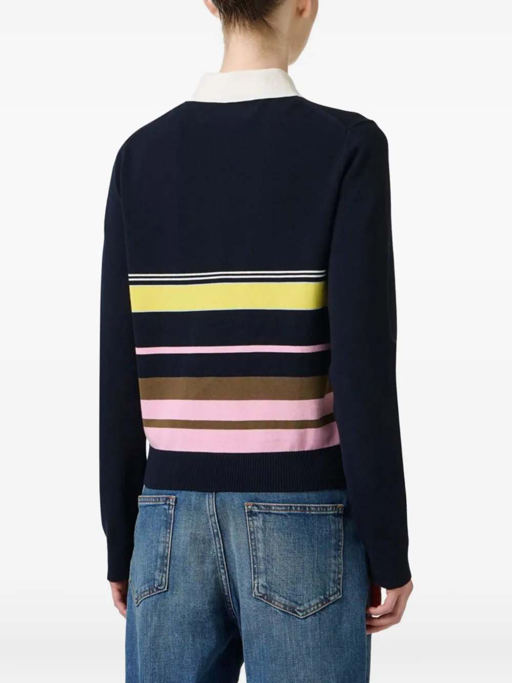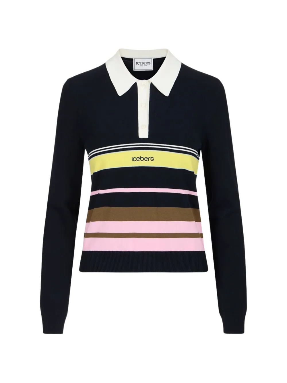 Темно-синее поло в полоску с застежкой на пуговицы и отложным воротником