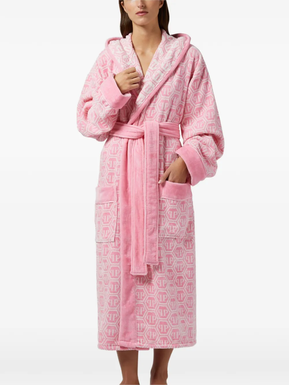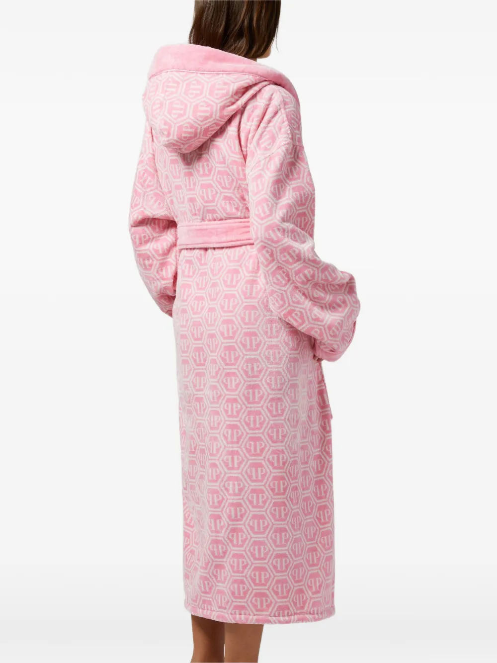Халат с капюшоном и узором Philipp Plein, розовый