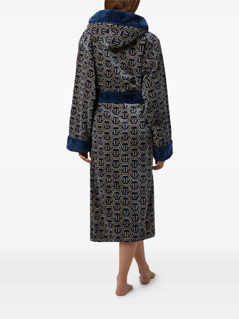Халат с капюшоном и узором Philipp Plein, синий