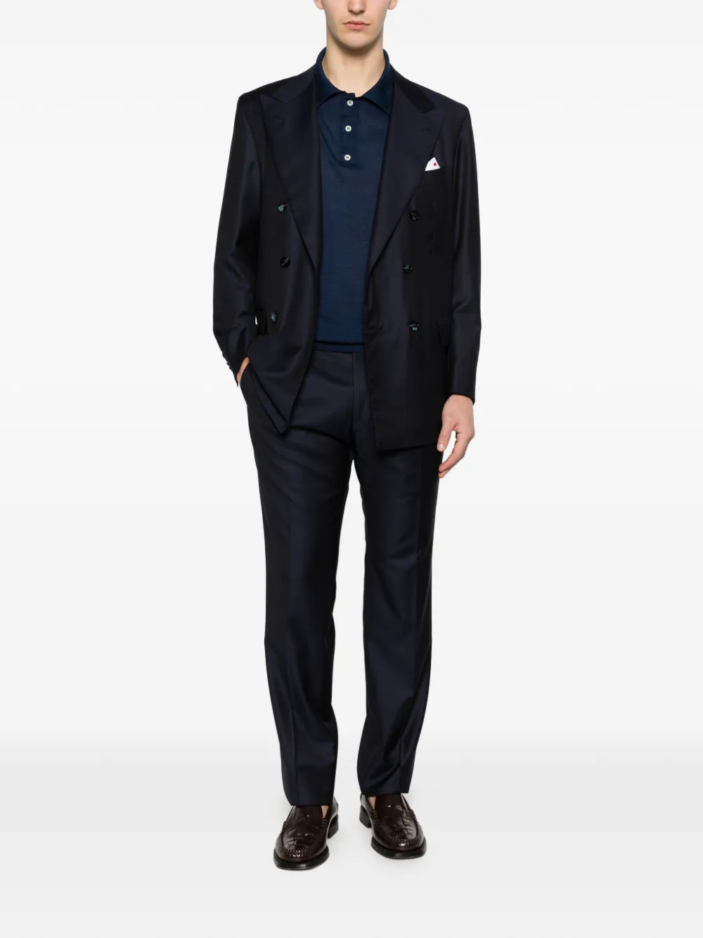 Двубортный костюм Kiton, синий