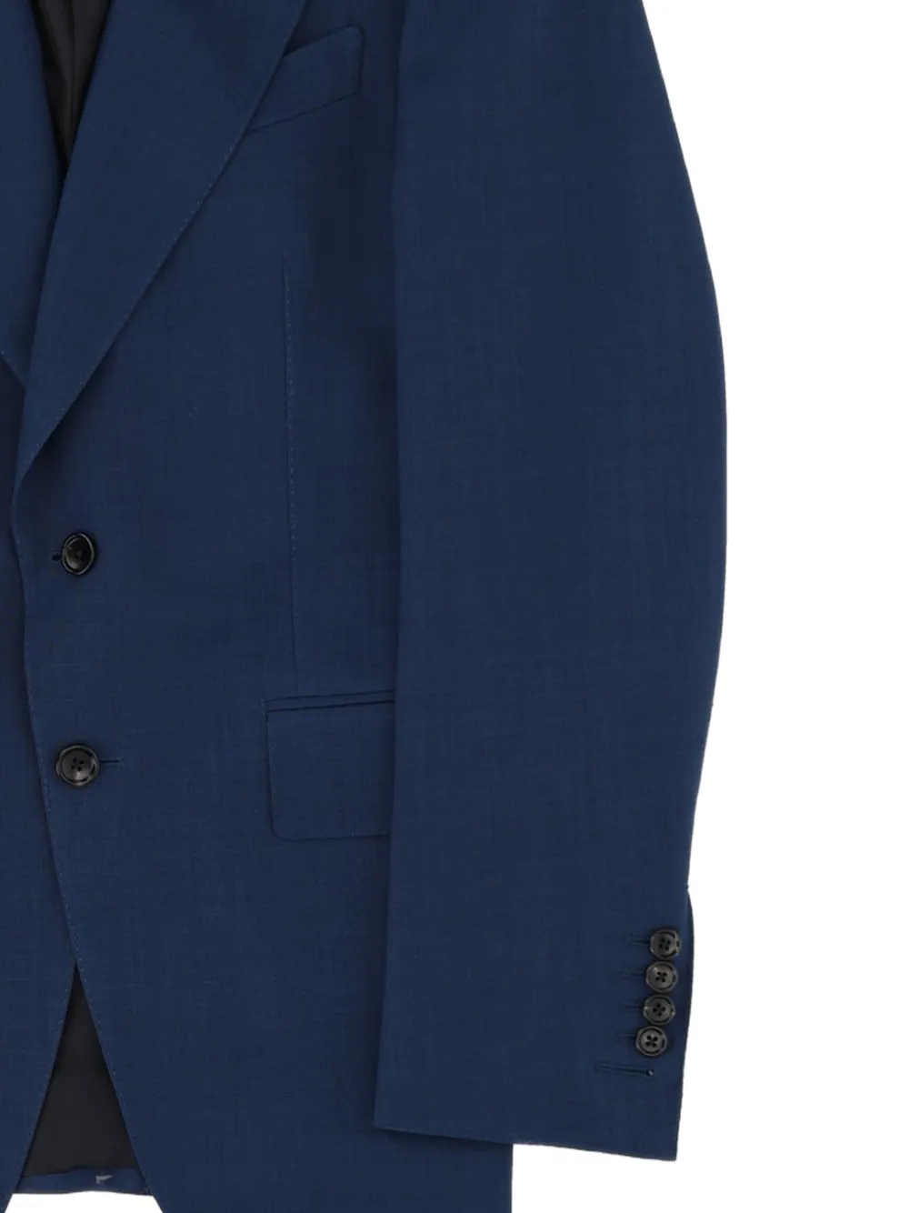 Синий однобортный пиджак с клапанами на карманах и застежкой на хлястик