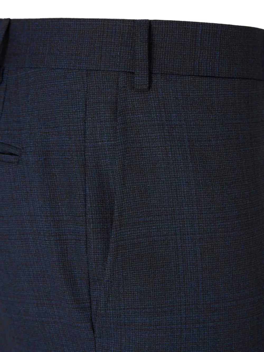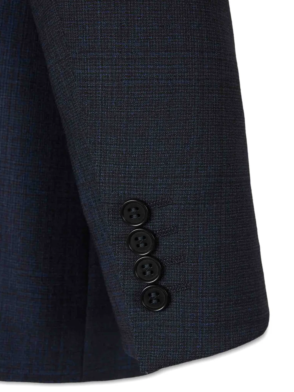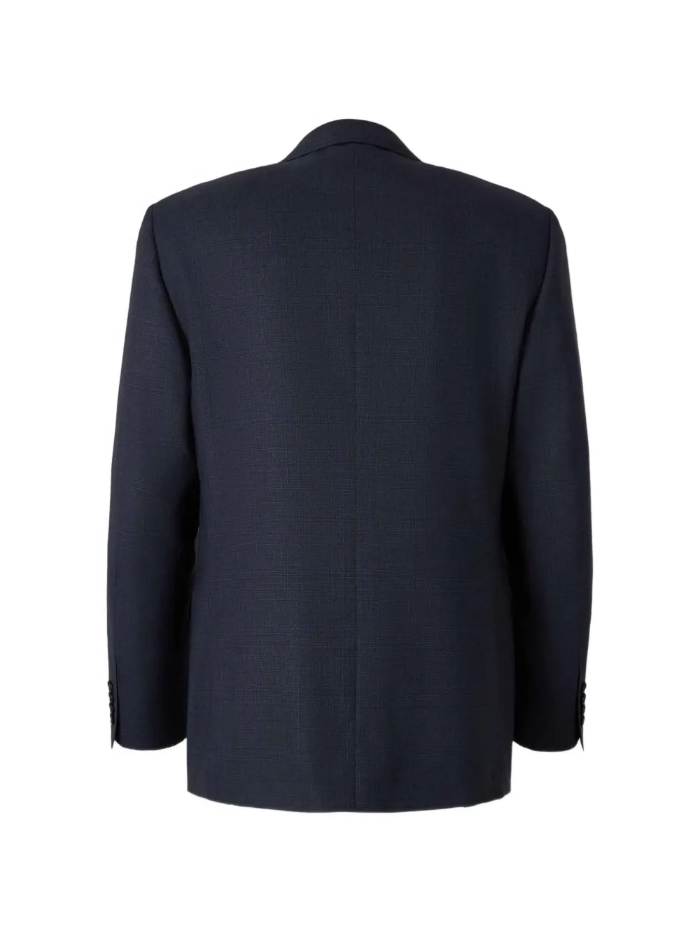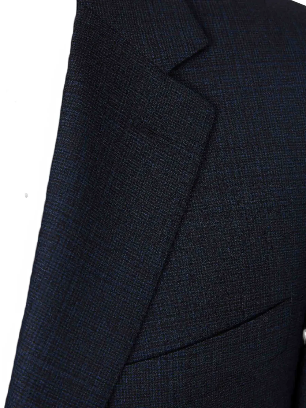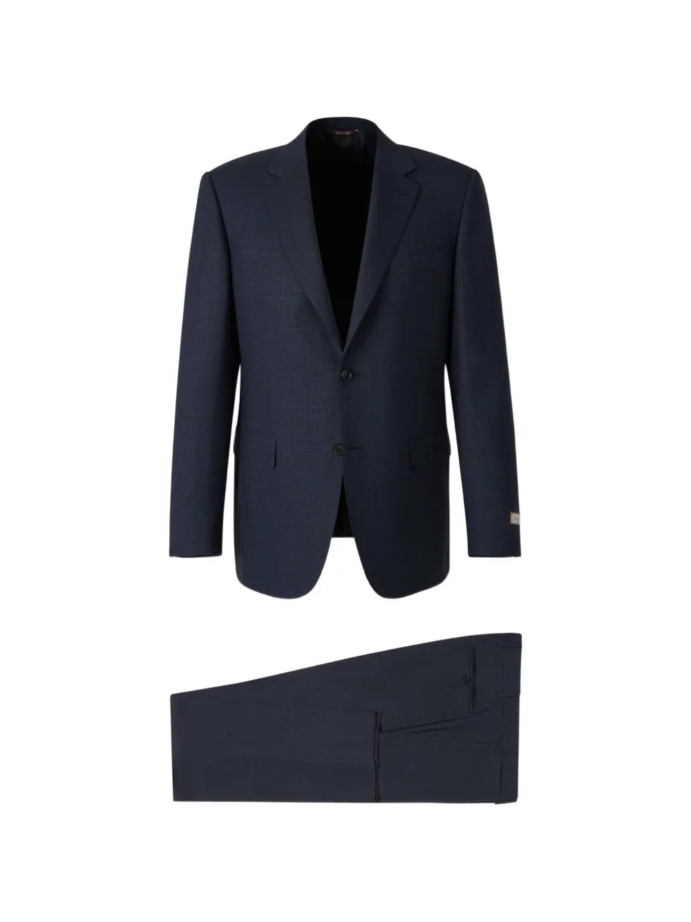 Синий костюм-двойка с пуговицами, карманами и лацканами с выемкой