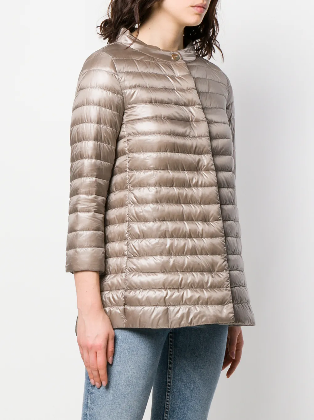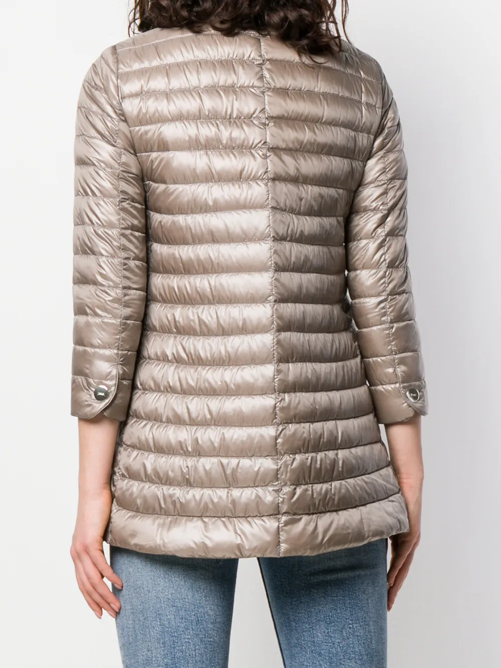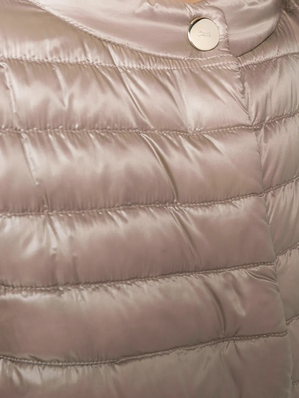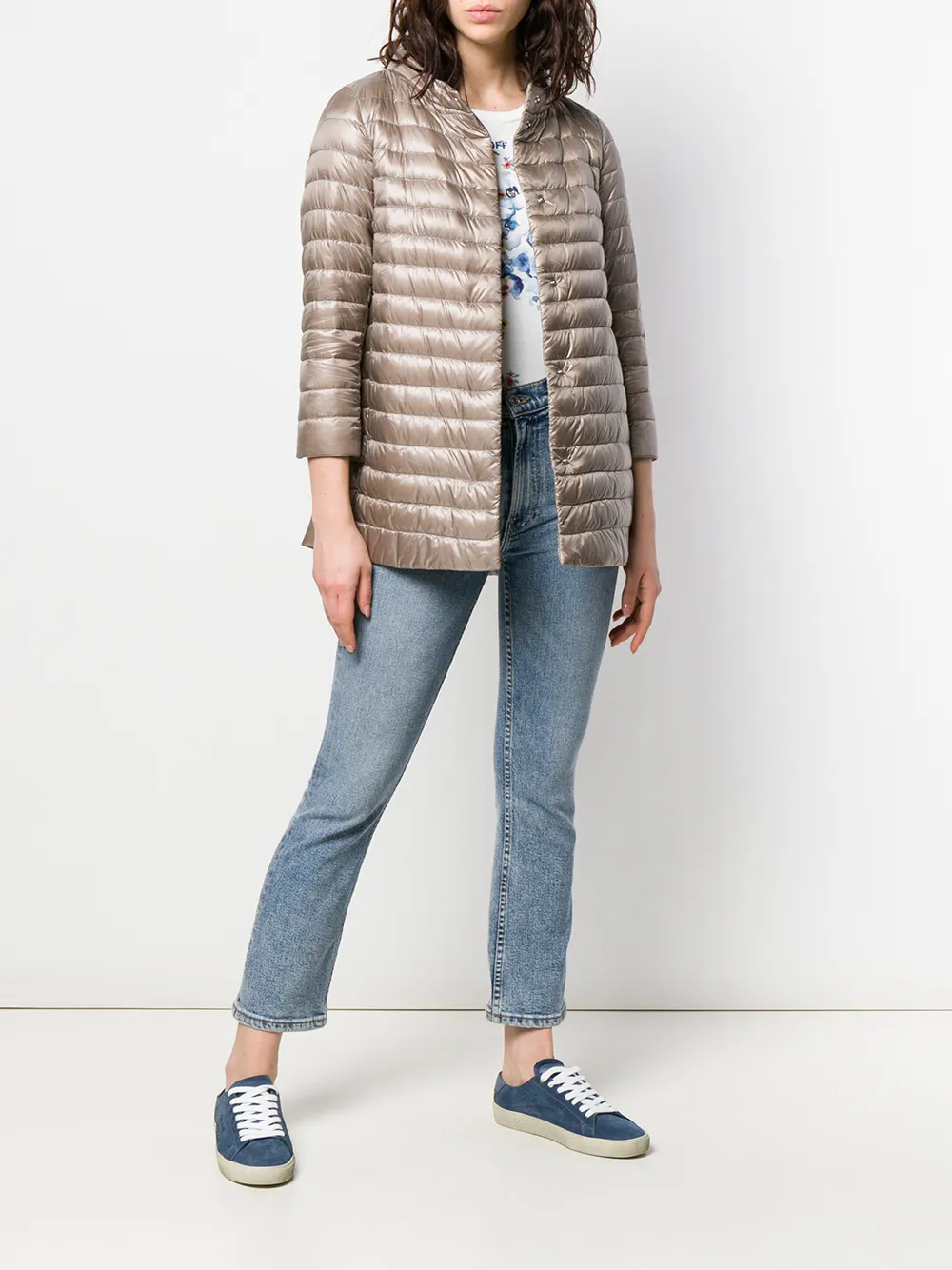Стеганое пальто от Herno (Херно). Воротник-стойка, застежка на пуговицах спереди, рукава три четверти и прямой подол. Цвет: коричневый.