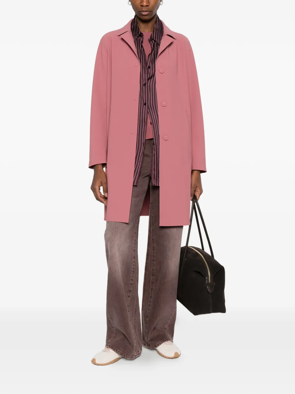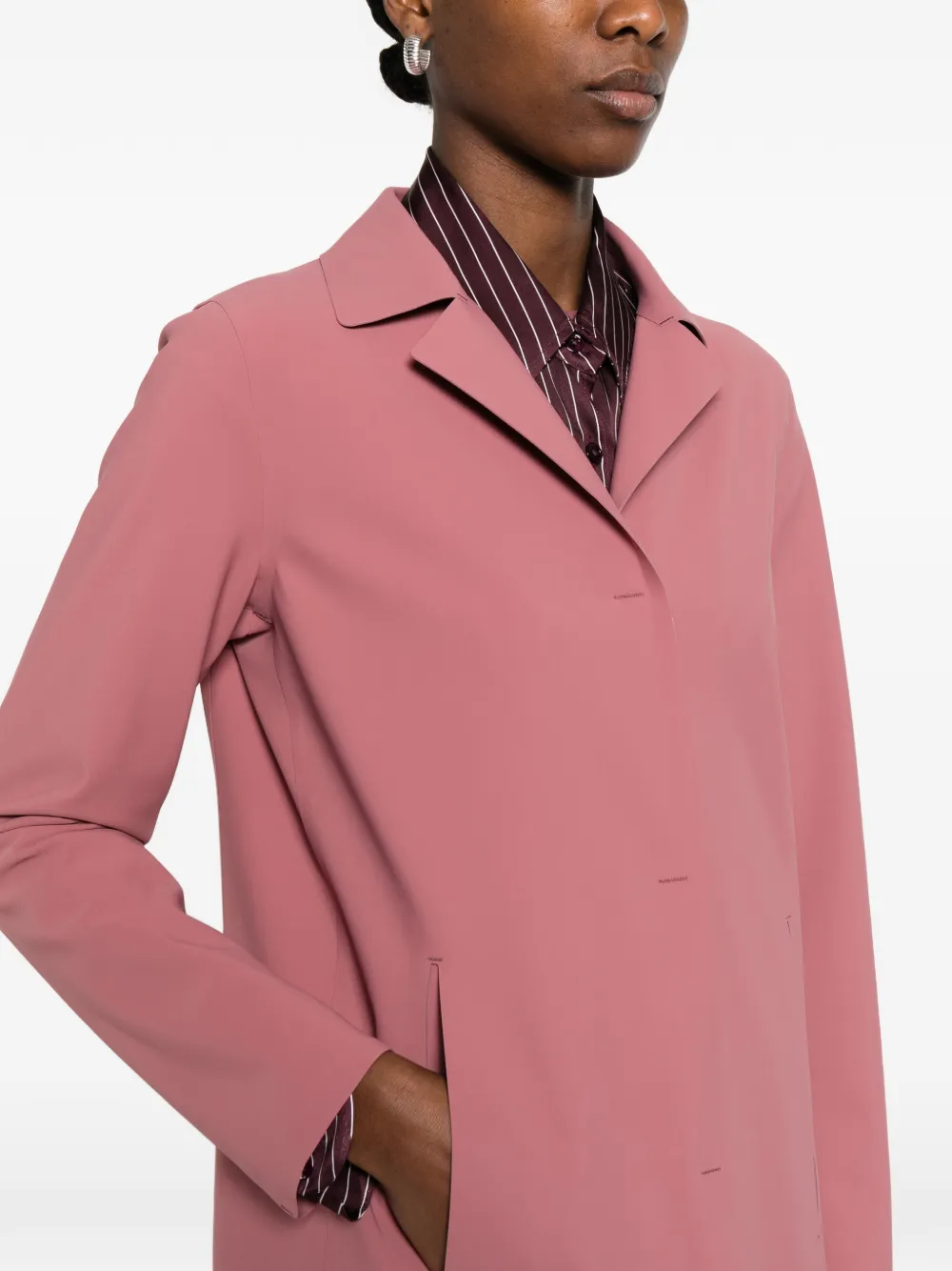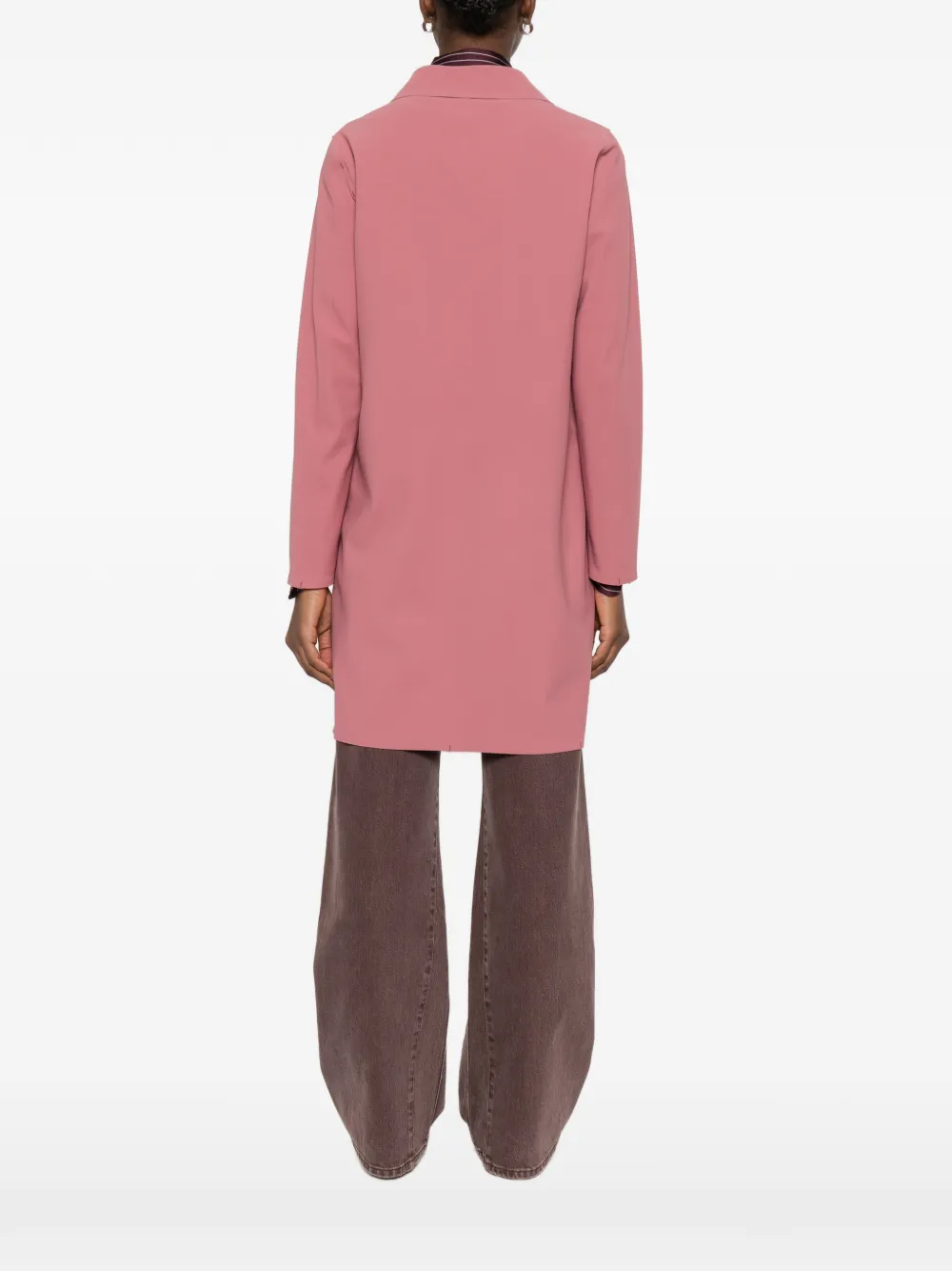 Розовые лацканы с вырезом, застежка на пуговицы, длинные рукава, прорезные карманы