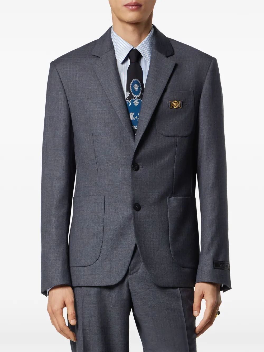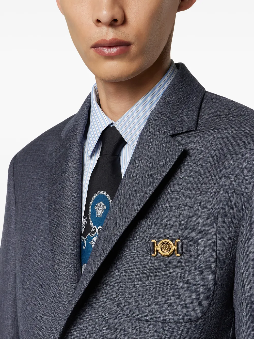 Пиджак с клетчатыми карманами Versace, серый
