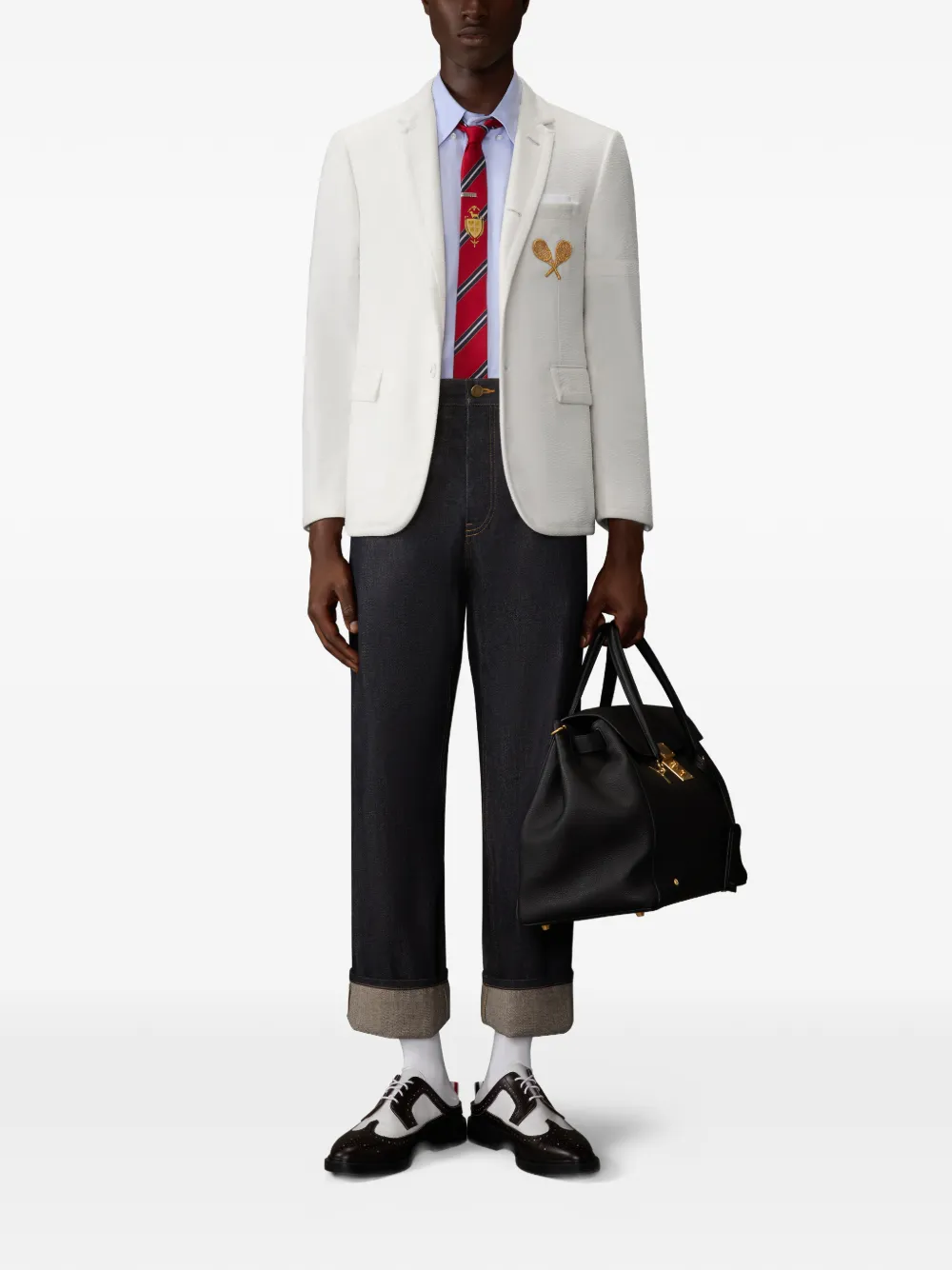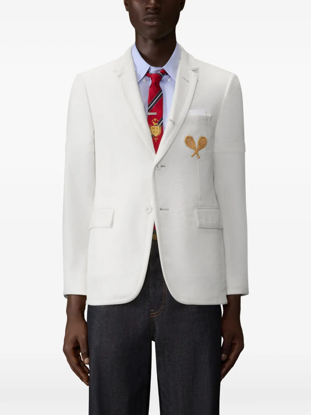 Пиджак с вышивкой Thom Browne, белый