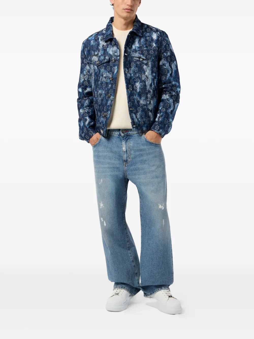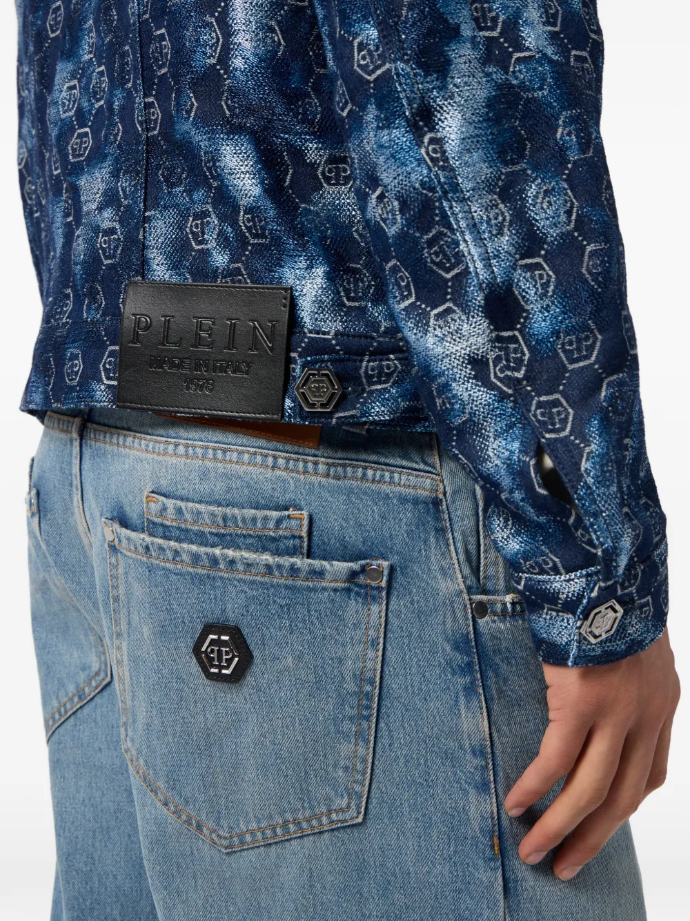 Пиджак с монограммой и пуговицами Philipp Plein, синий