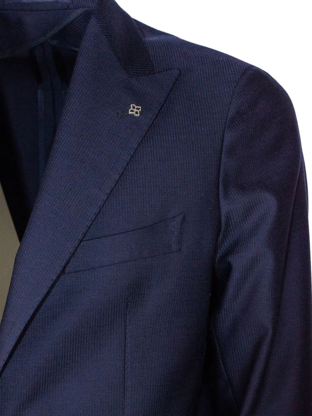 Голубая брошь, накладные карманы, двойная шлица, чистая шерсть