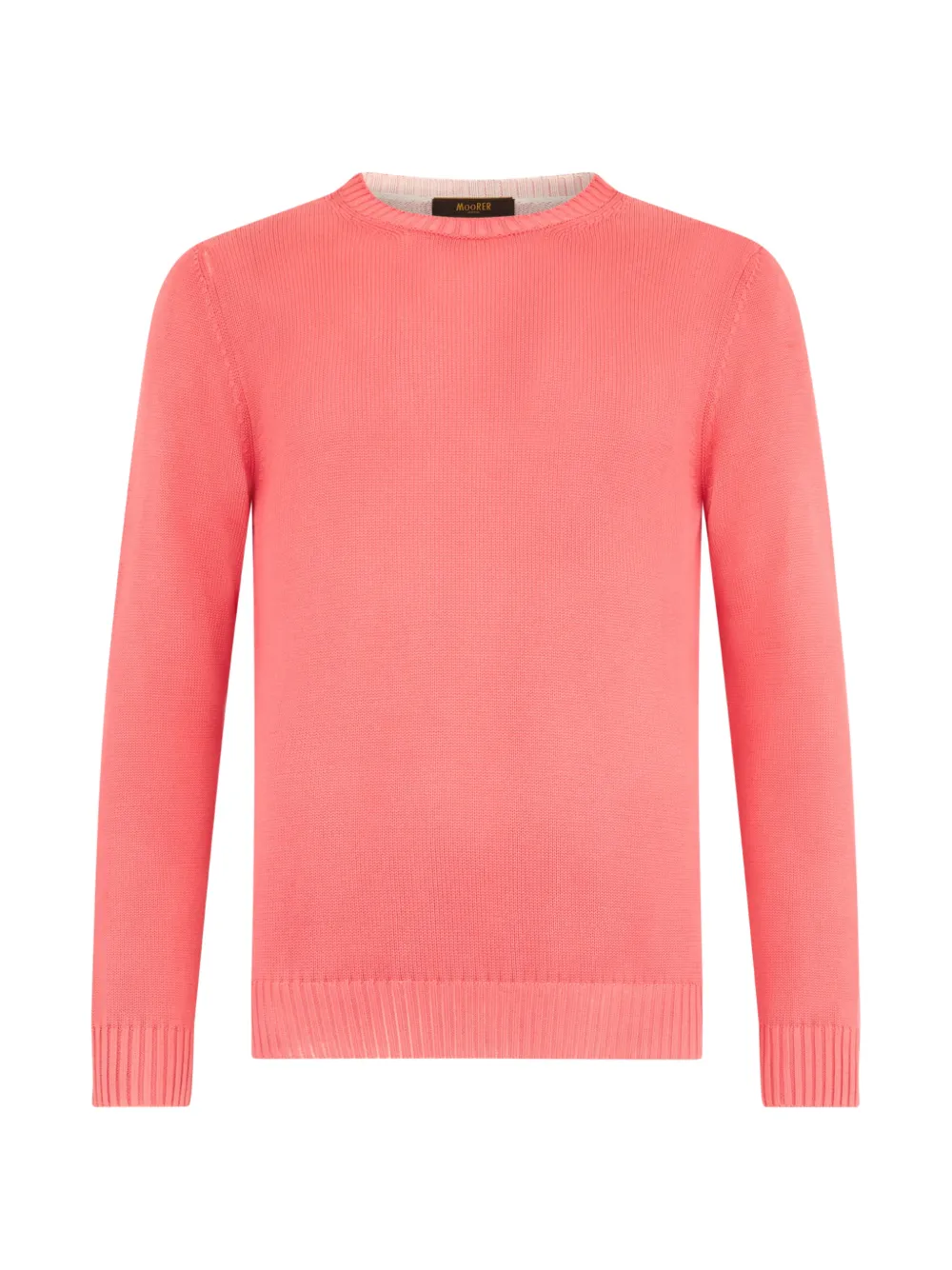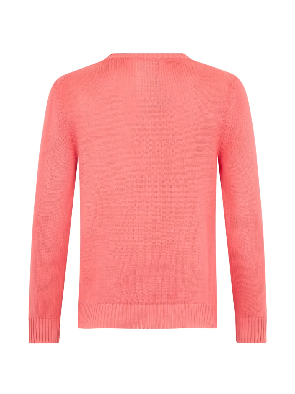 Кораллово-розовый с ребристыми отделками, круглый вырез, длинные рукава, вязаная конструкция