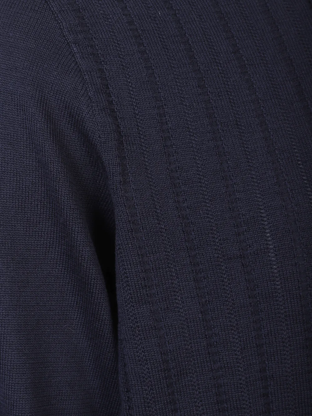 Синий вязаный джемпер в рубчик с круглым вырезом, длинными рукавами и прямым подолом