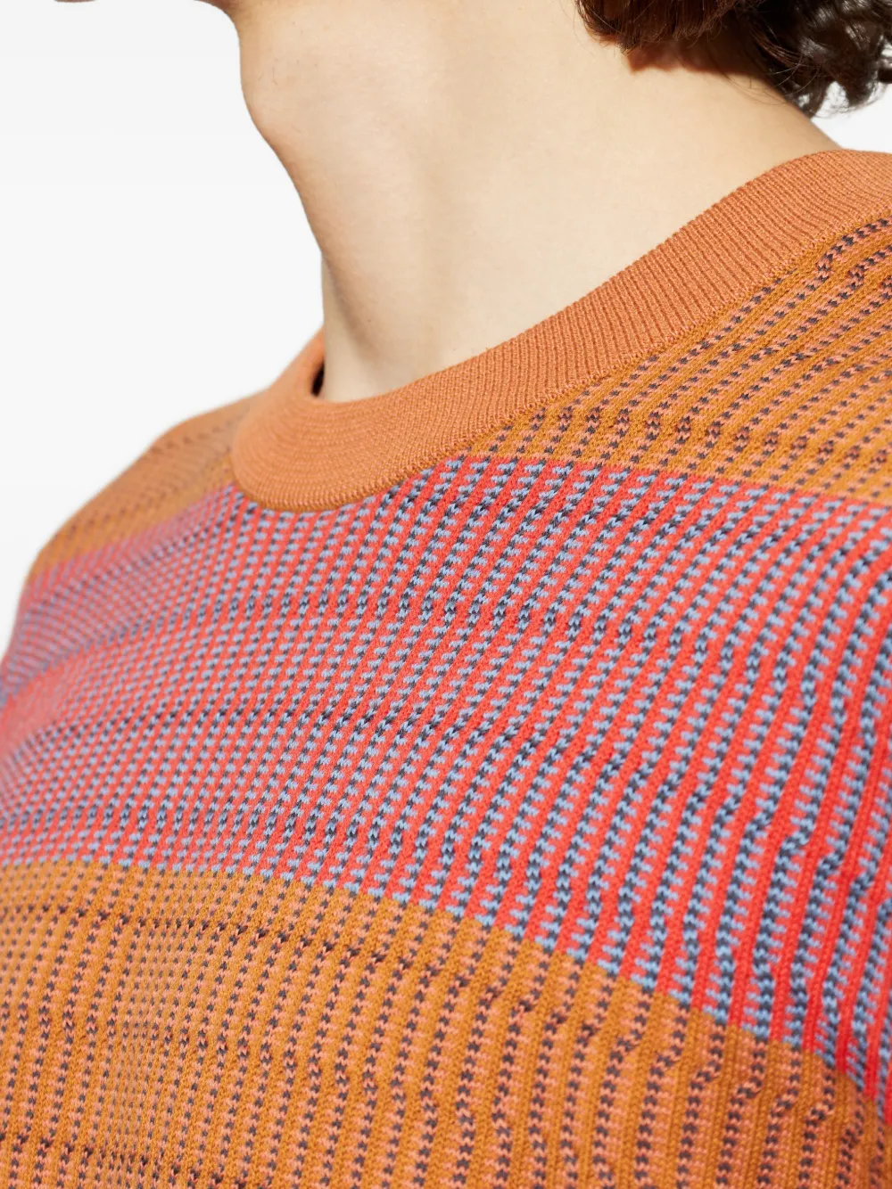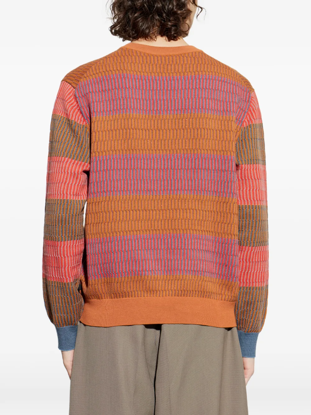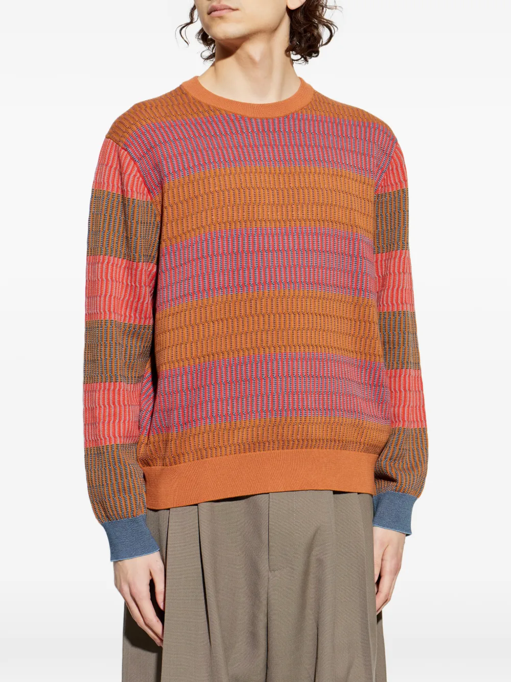 Жжено-оранжевый/разноцветный полосатый свитер с круглым вырезом и длинными рукавами