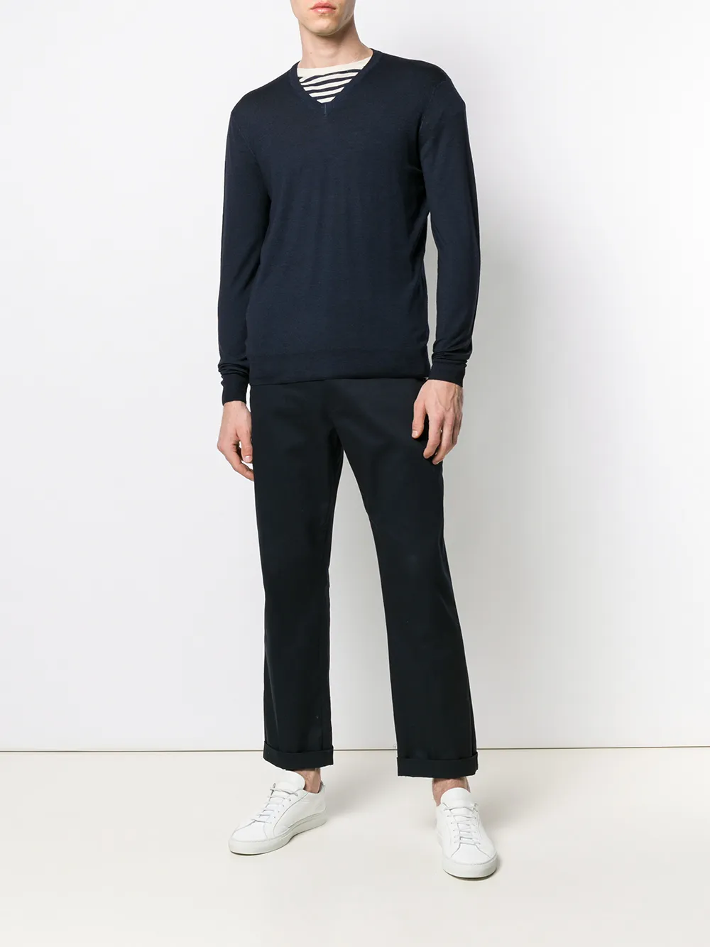 Джемпер с V-образным вырезом от Drumohr. V-образная горловина в рубчик, длинные рукава и прямой подол. Цвет: синий.