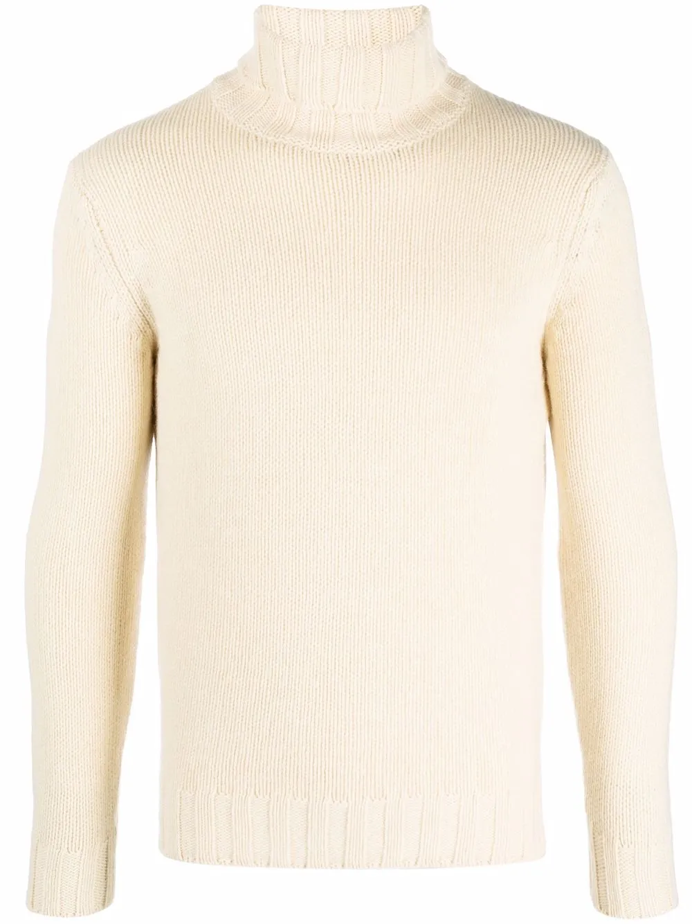 Высокий воротник, длинные рукава и подол в рубчик. Цвет: белый.
