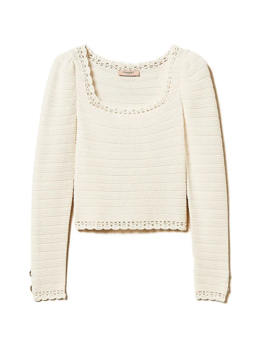 Вязаный крючком свитер Twinset, бежевый 27 932₽