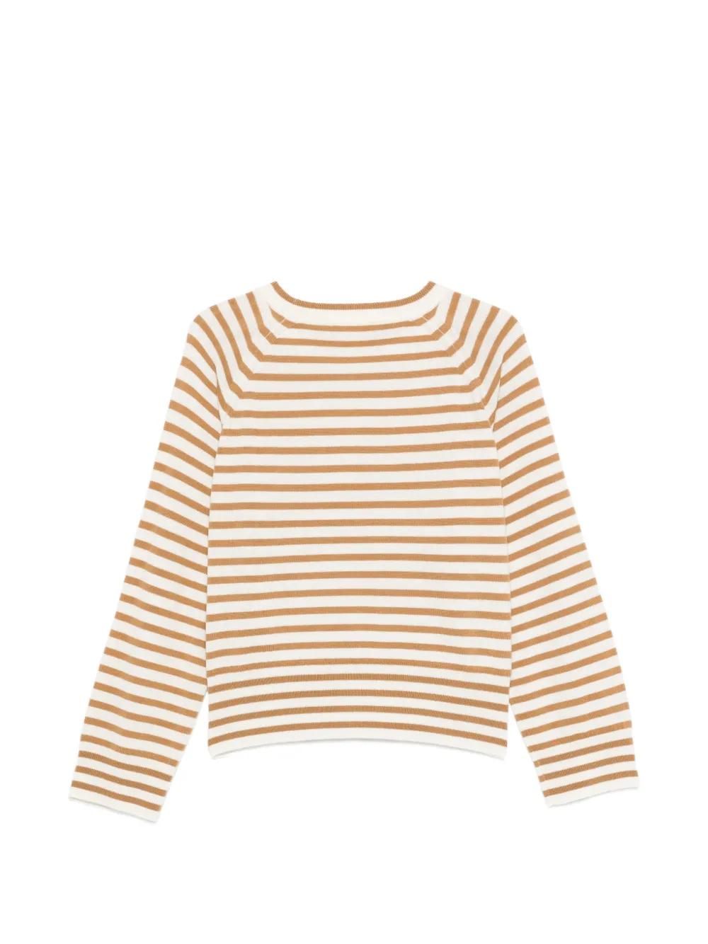Светло-коричневый с полосатым рисунком, круглый вырез, длинные рукава, ребристый низ, ребристые манжеты