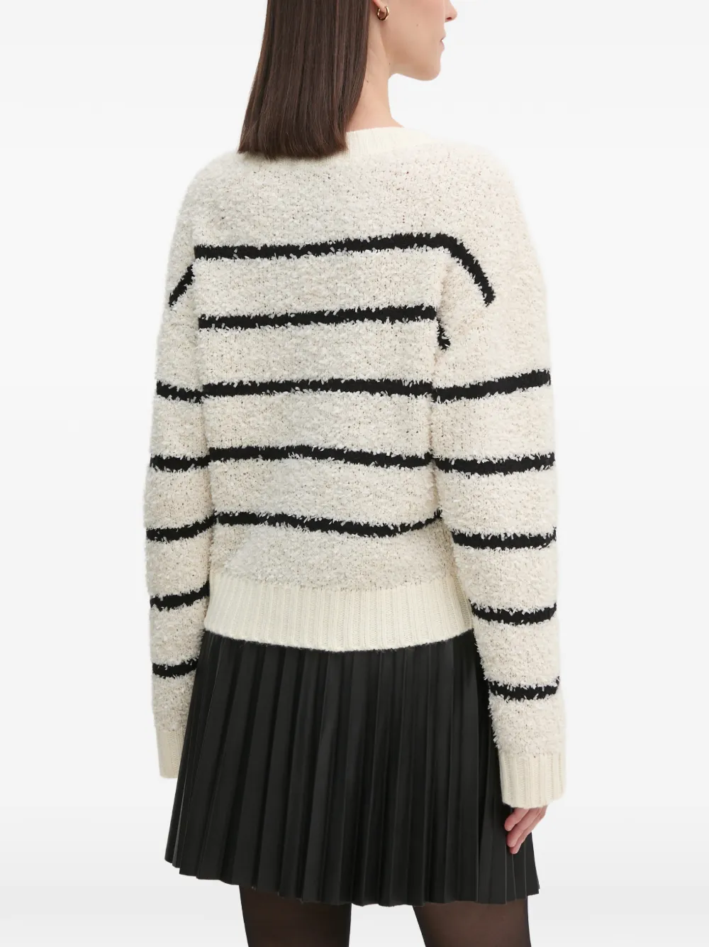 Белый и черный джемпер с круглым вырезом, длинными рукавами и ребристыми манжетами