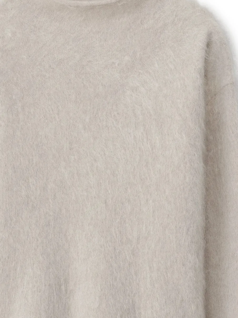 Бежевый, с ворсистой текстурой, круглый вырез, длинные рукава, прямой подол