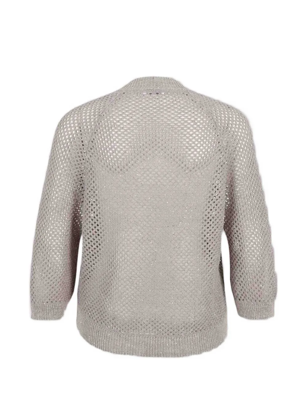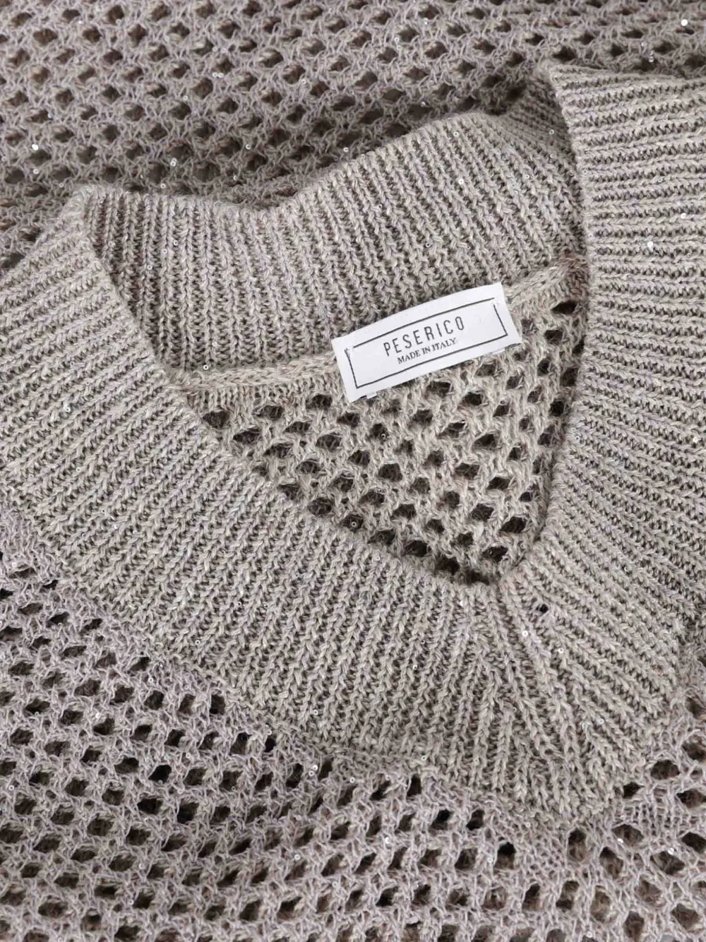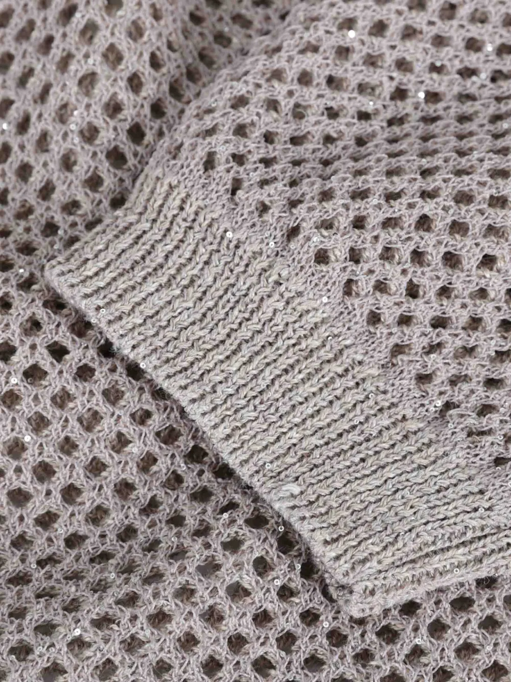 Серый ажурный (с сетчатой вязкой) свитер с пайетками и V-образным вырезом