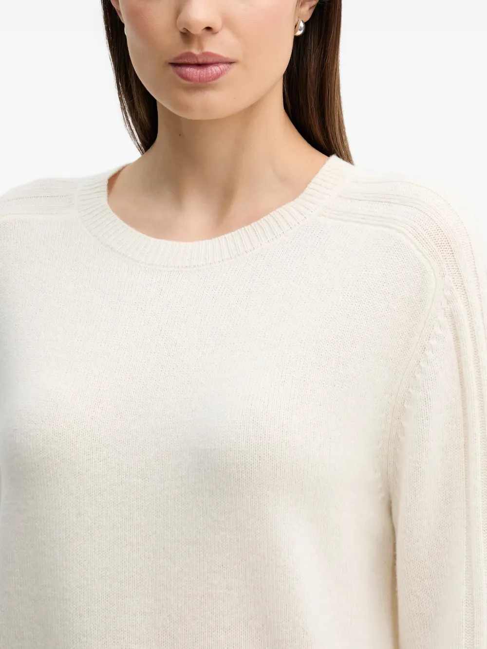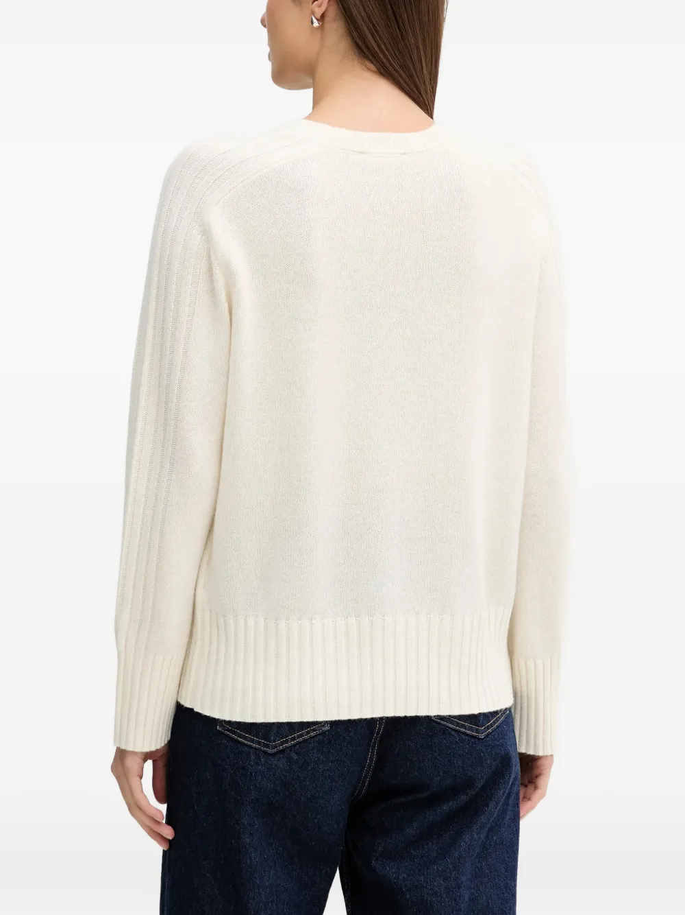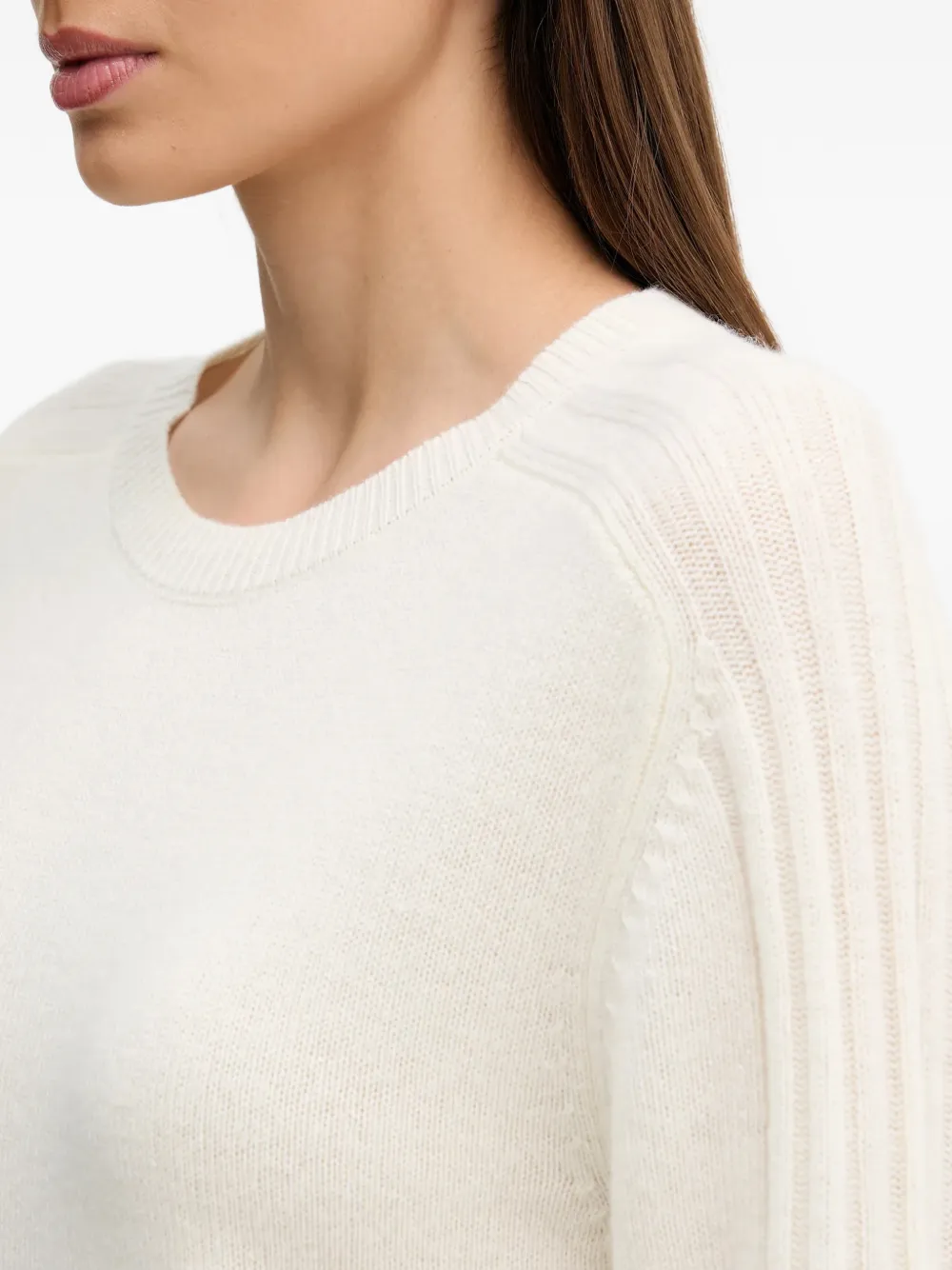 Белый свитер с ребристой отделкой, круглым вырезом и длинными рукавами