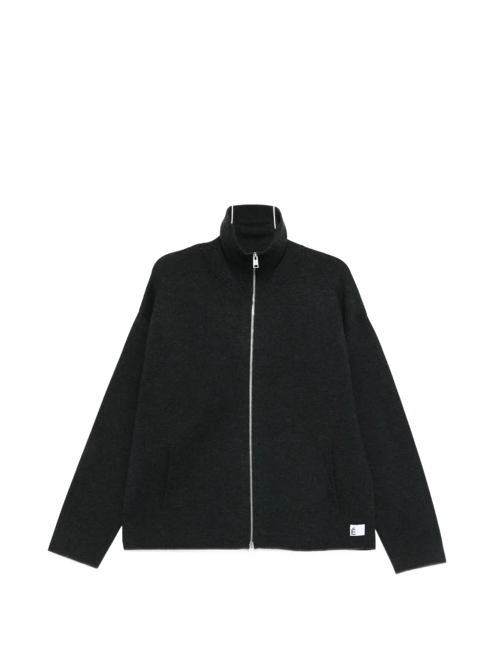 Серый с застежкой-молнией, высоким воротником и накладным карманом