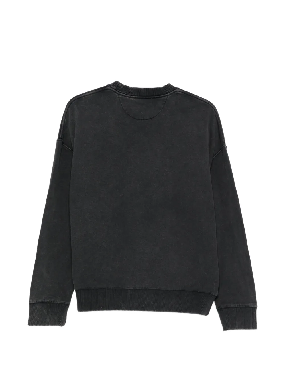 Выстиранный черный, принт с лозунгом, круглый вырез, длинные рукава, ребристая отделка