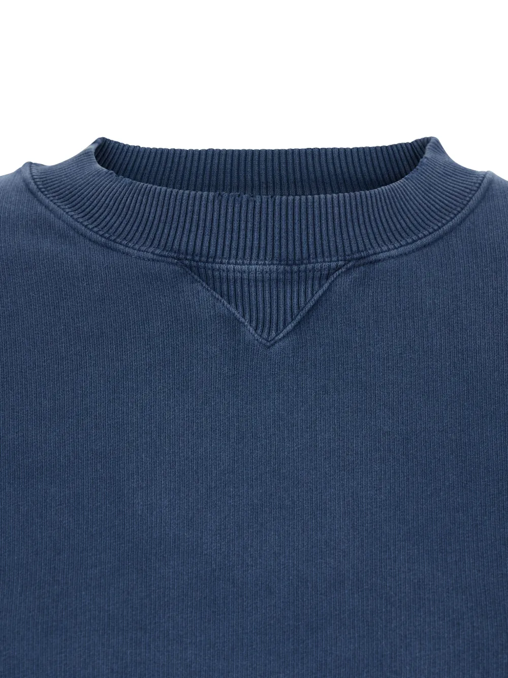 Синий хлопковый свитер с круглым вырезом, ребристыми краями и длинными рукавами
