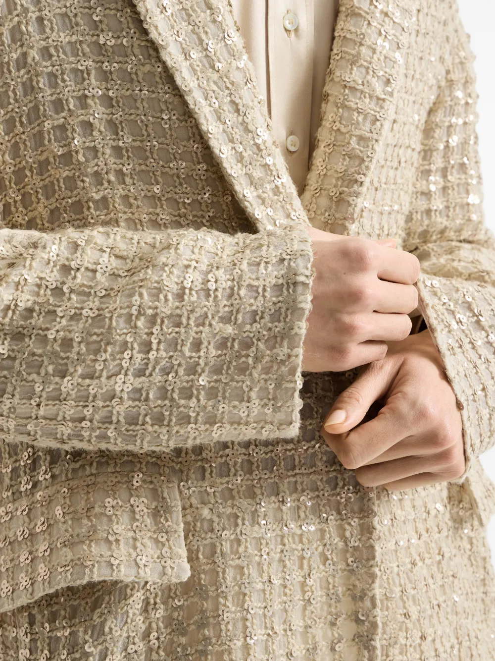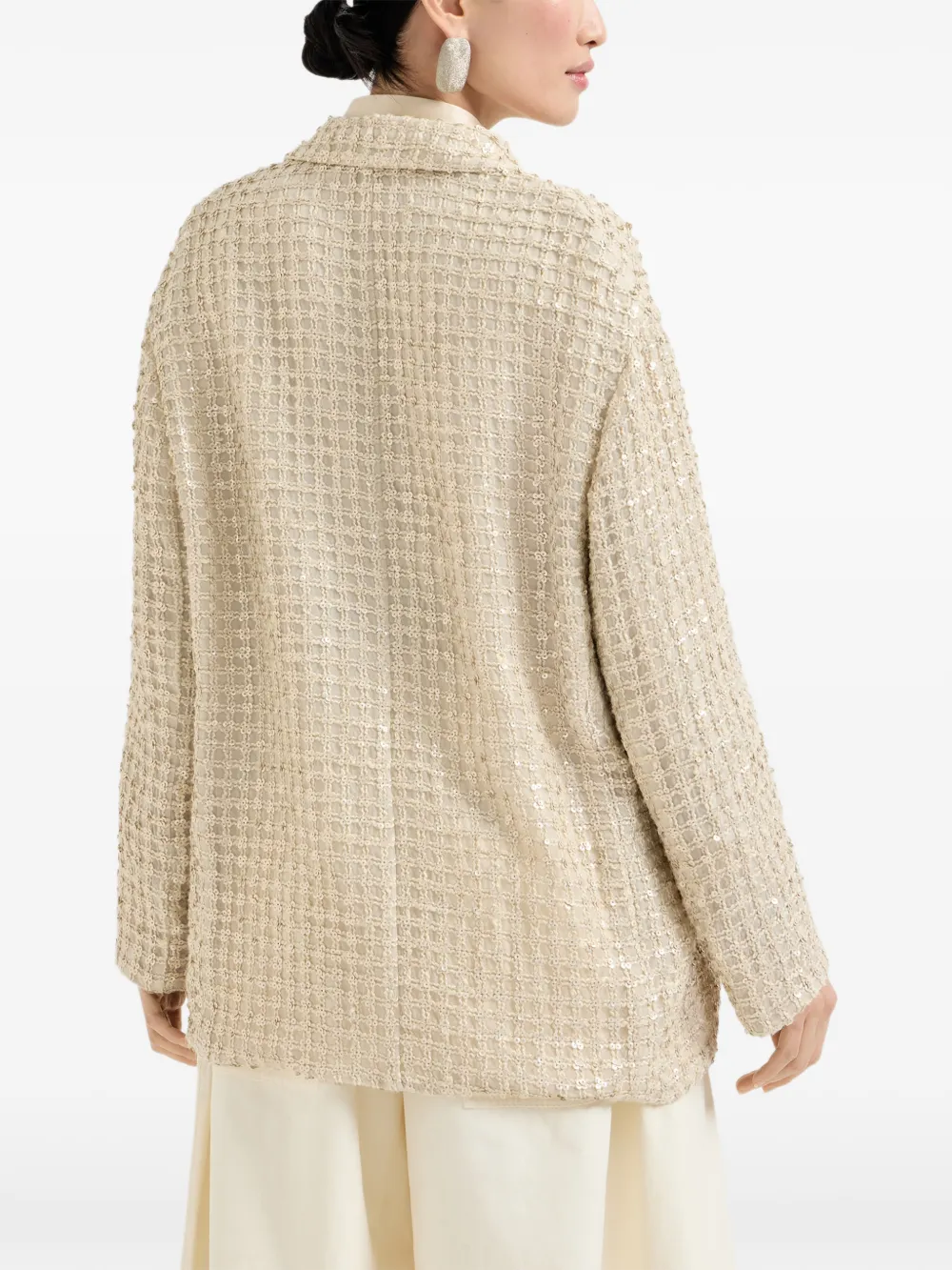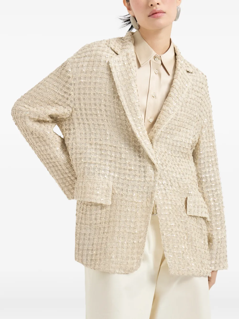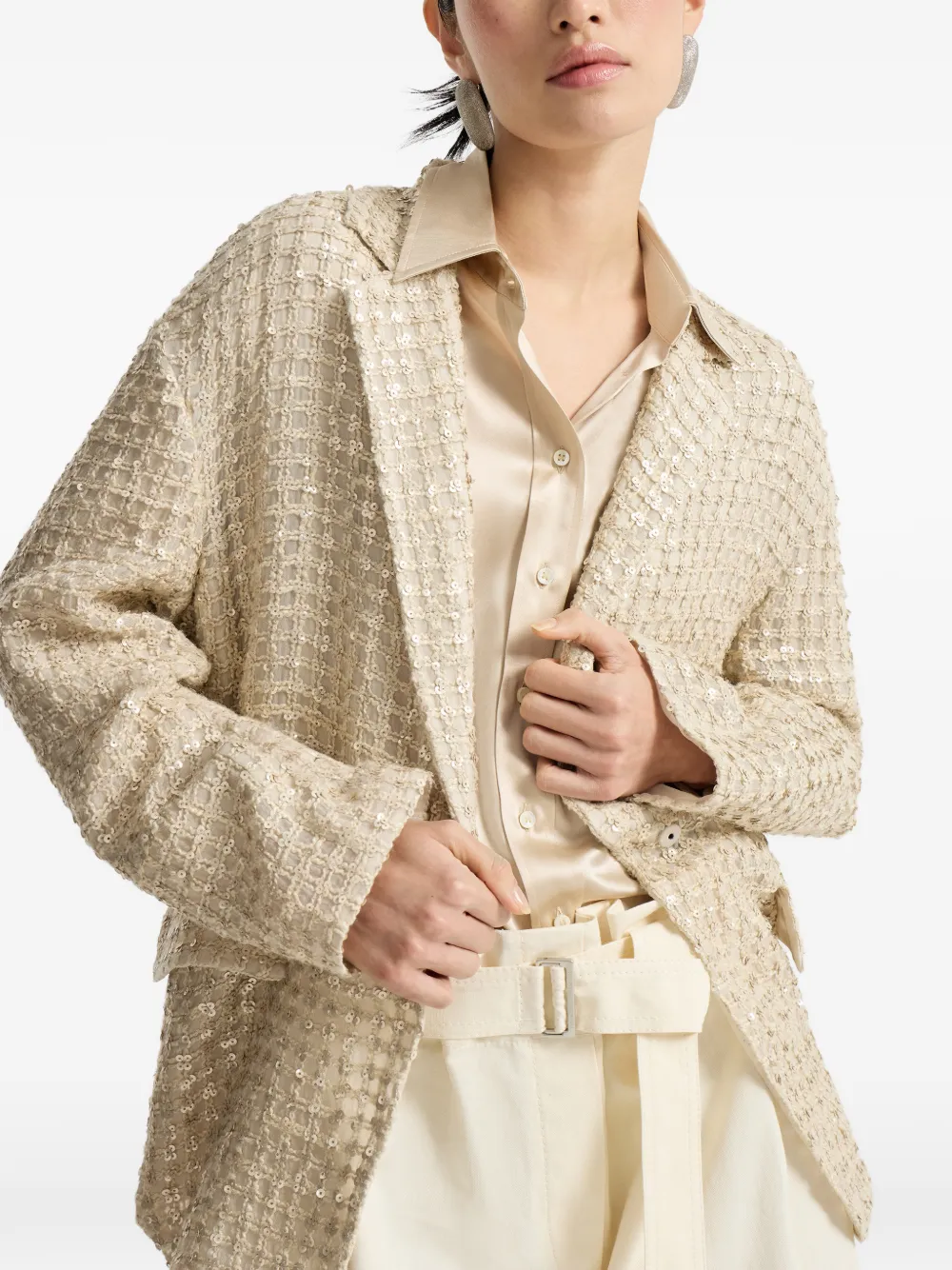 Шелковый блейзер с вышивкой Brunello Cucinelli, бежевый
