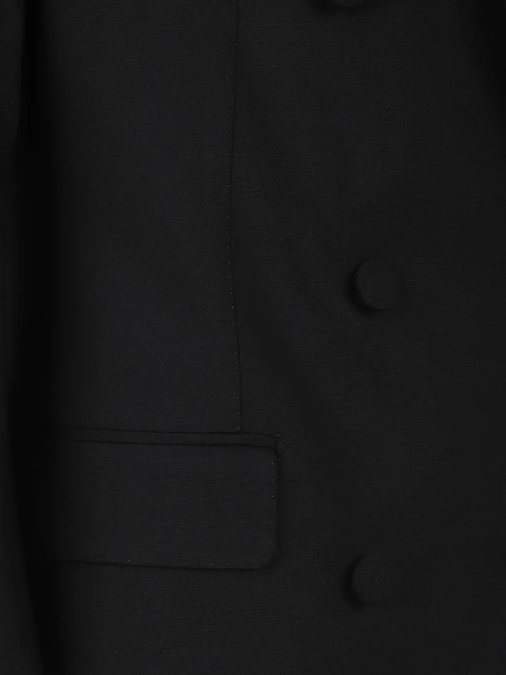 Черный двубортный с клапанами на карманах и застежкой на пуговицы