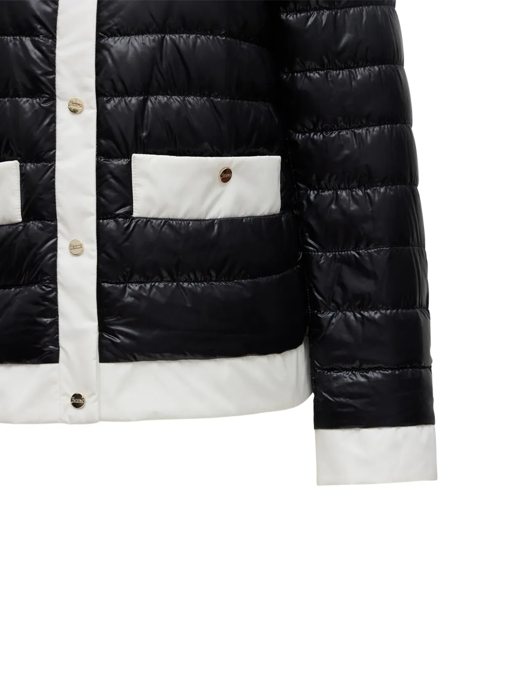 Черные карманы, круглый вырез, застежка на кнопках, стеганая отделка