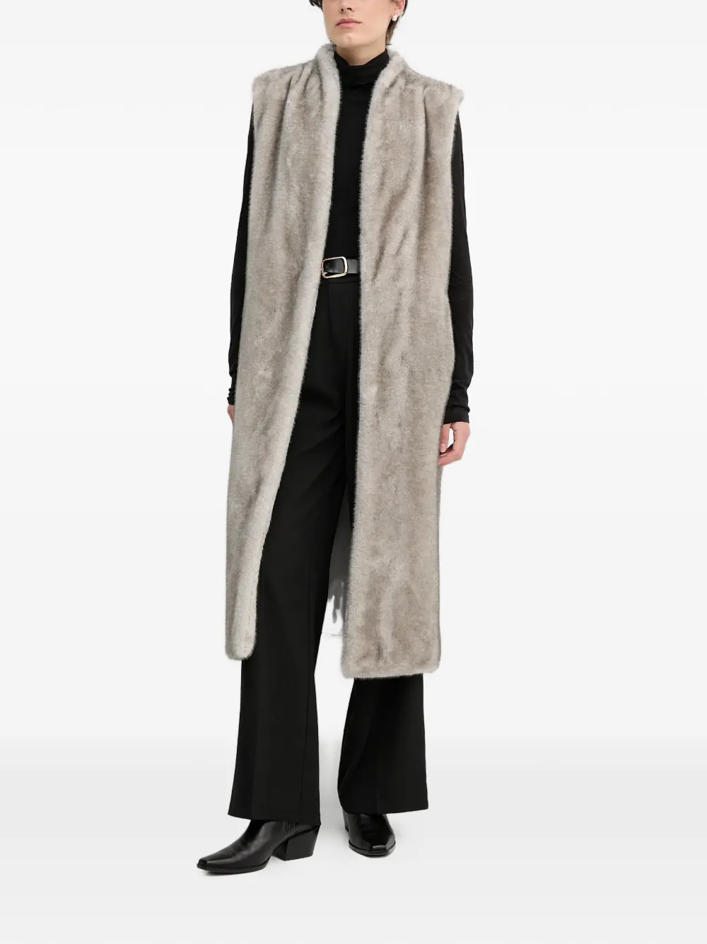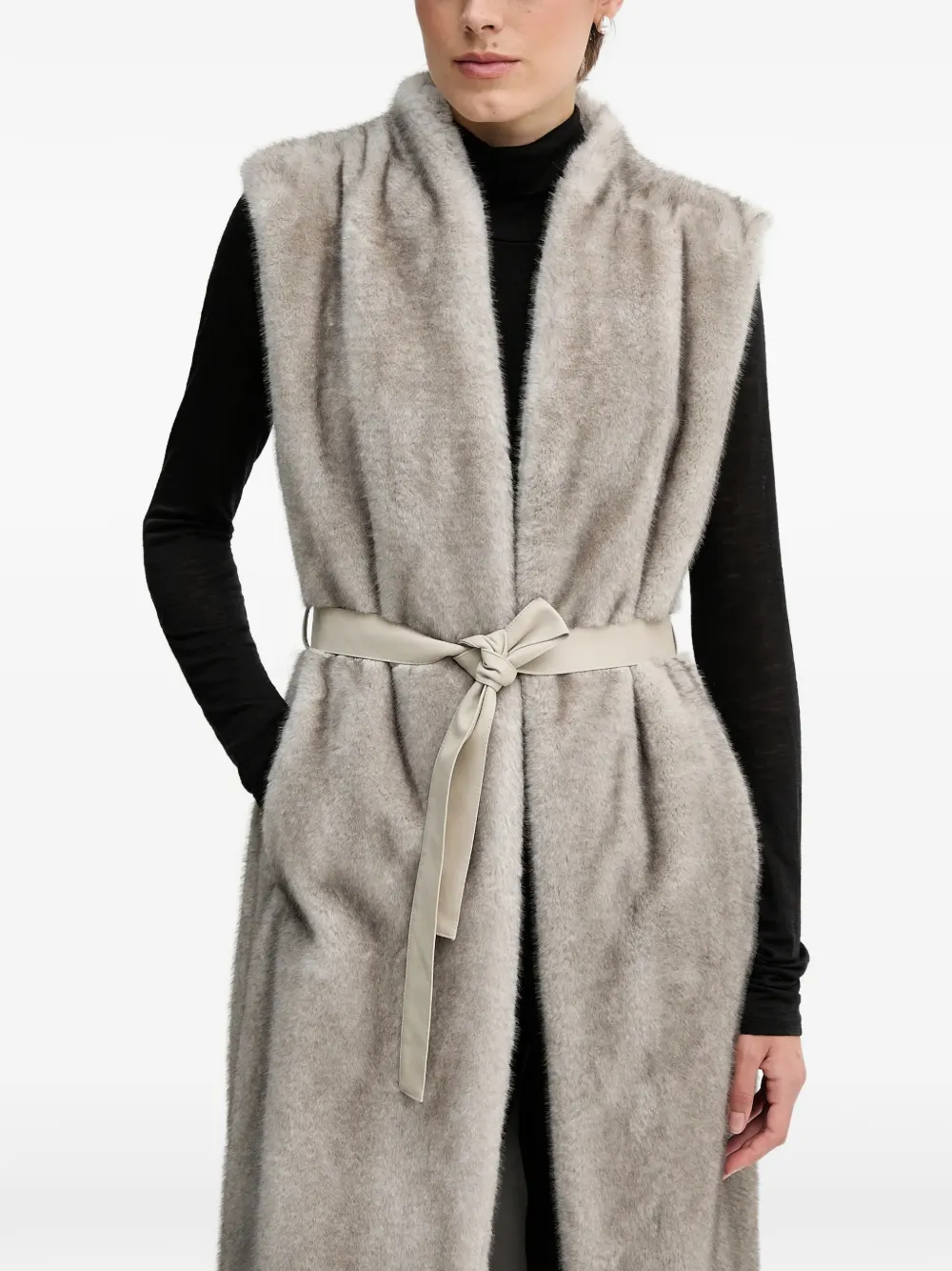 Серый регулируемый пояс-лента без рукавов из искусственного меха