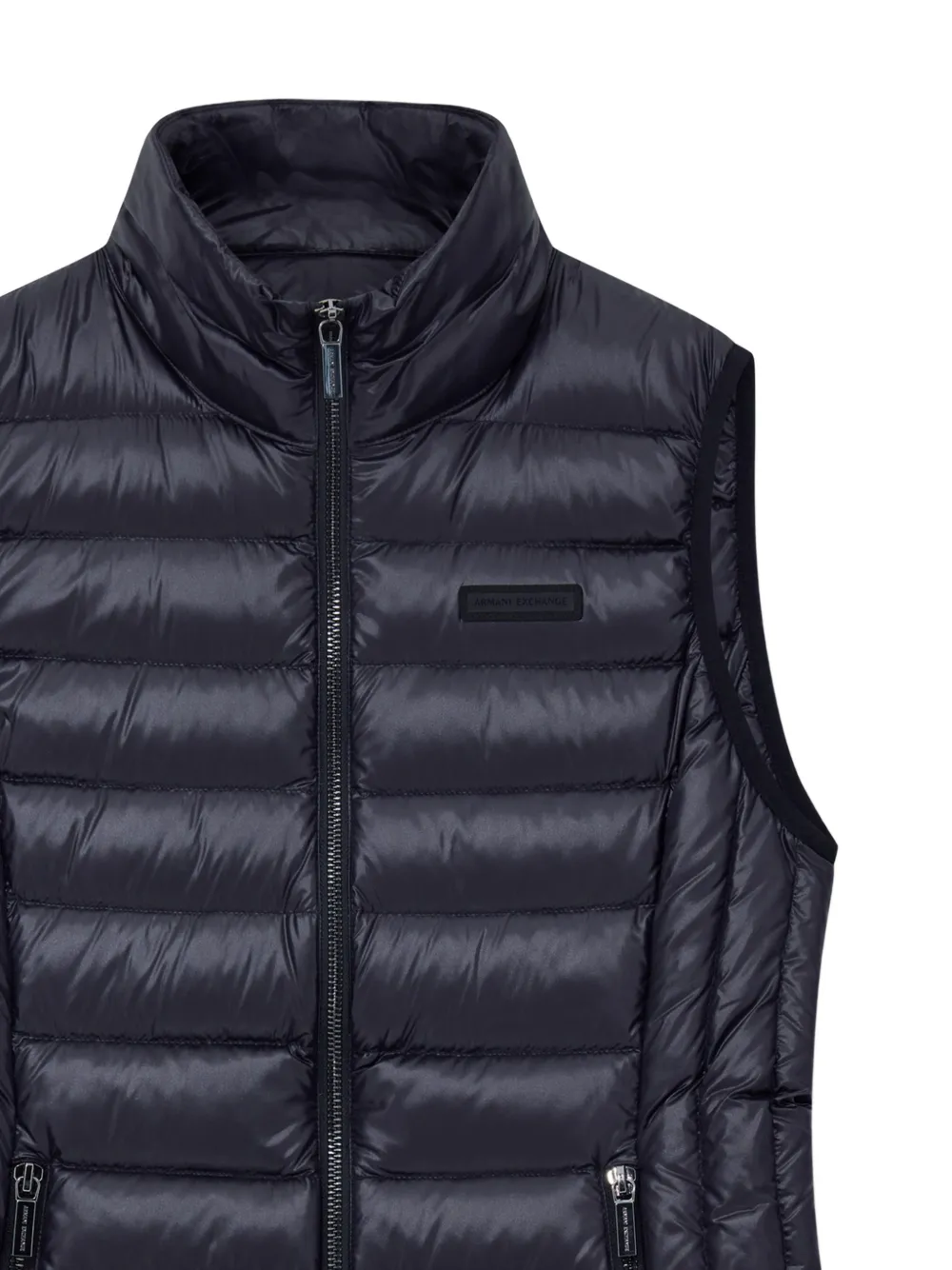 Темно-синий стеганый дизайн, застежка-молния, без рукавов, прорезные карманы на молнии