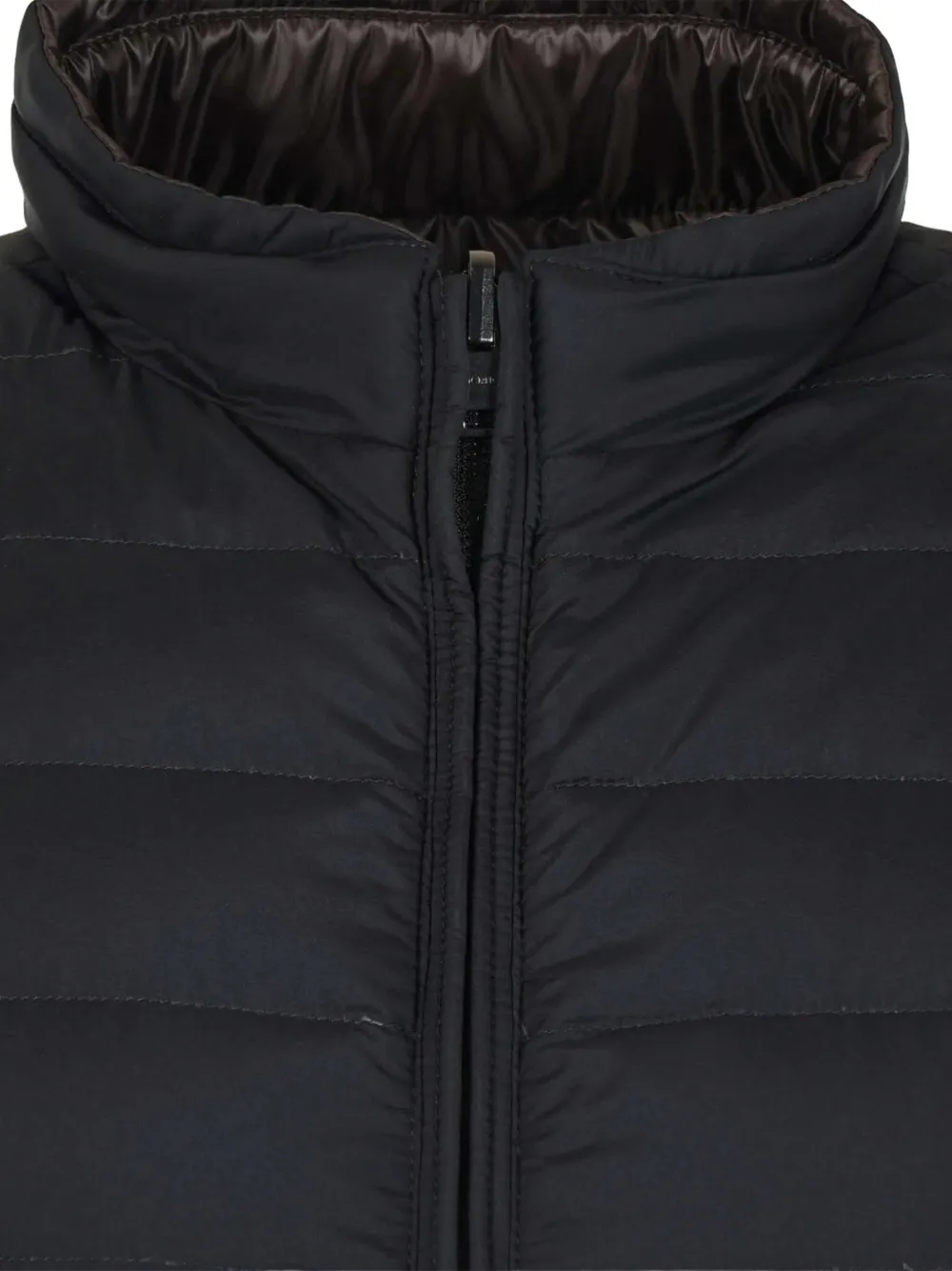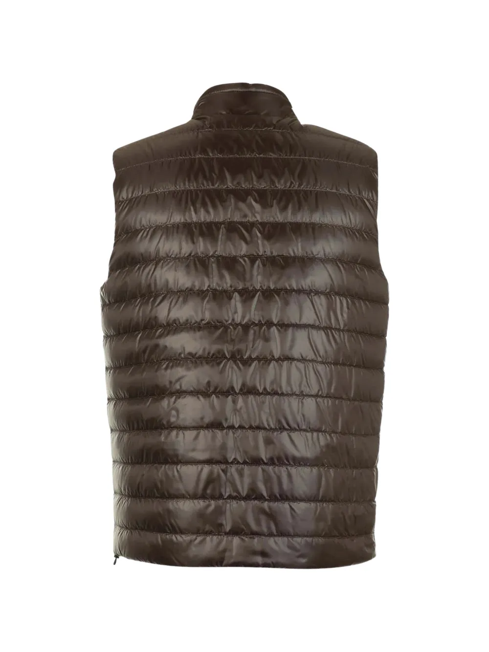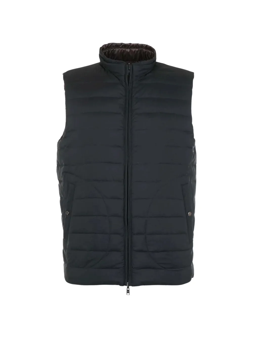 Темно-коричневый и синий, стеганый дизайн, застежка-молния, без рукавов, прорезные карманы, двусторонний
