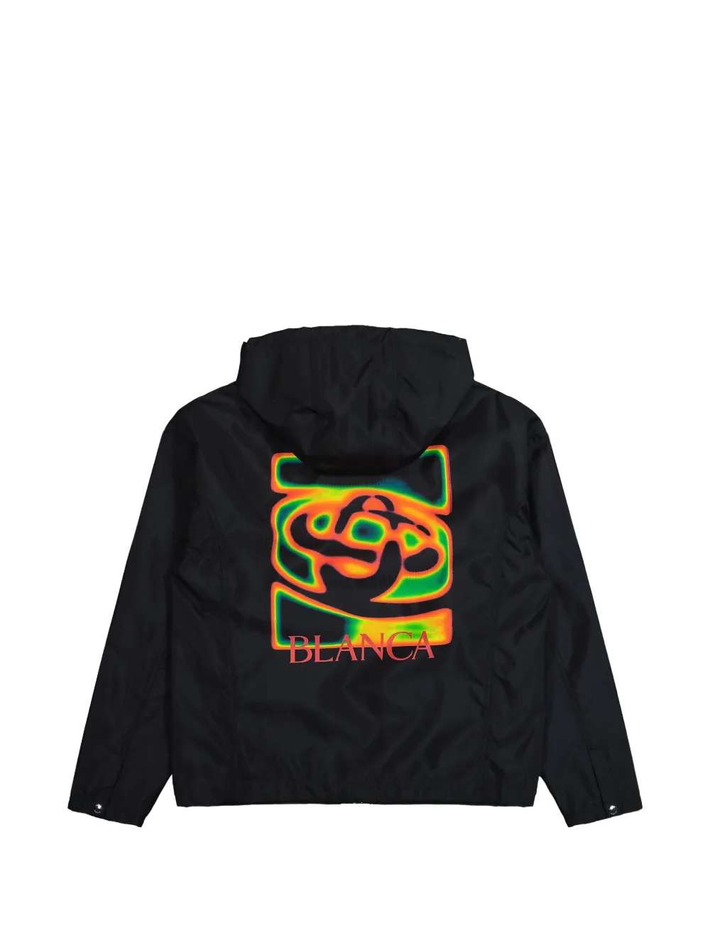 Черная куртка с принтом "тепловая карта", застежкой-молнией во всю длину, интегрированным капюшоном, карманами на кнопках и принтом на спине