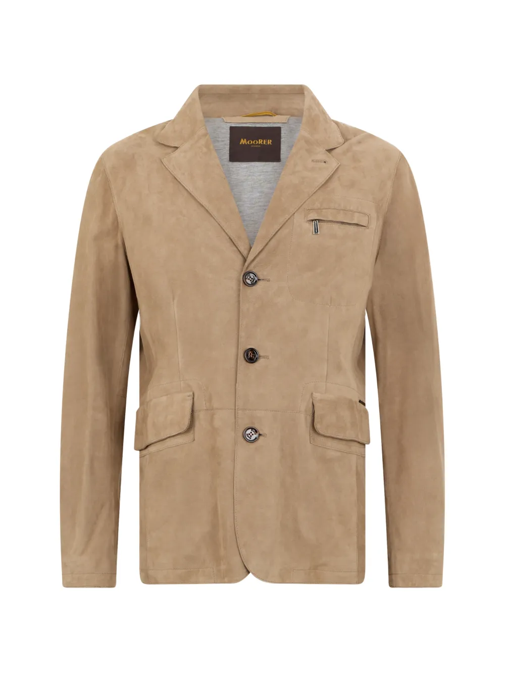 Светло-коричневый, застежка на пуговицы, нагрудный карман, лацканы с вырезом, клапанные карманы