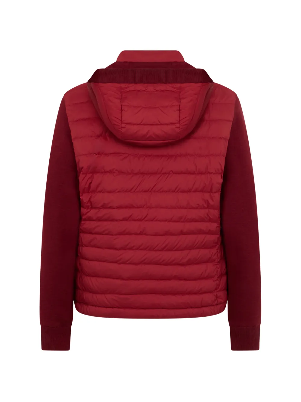 Красный цвет, застежка-молния спереди, капюшон со шнурком, длинные рукава, стеганый дизайн