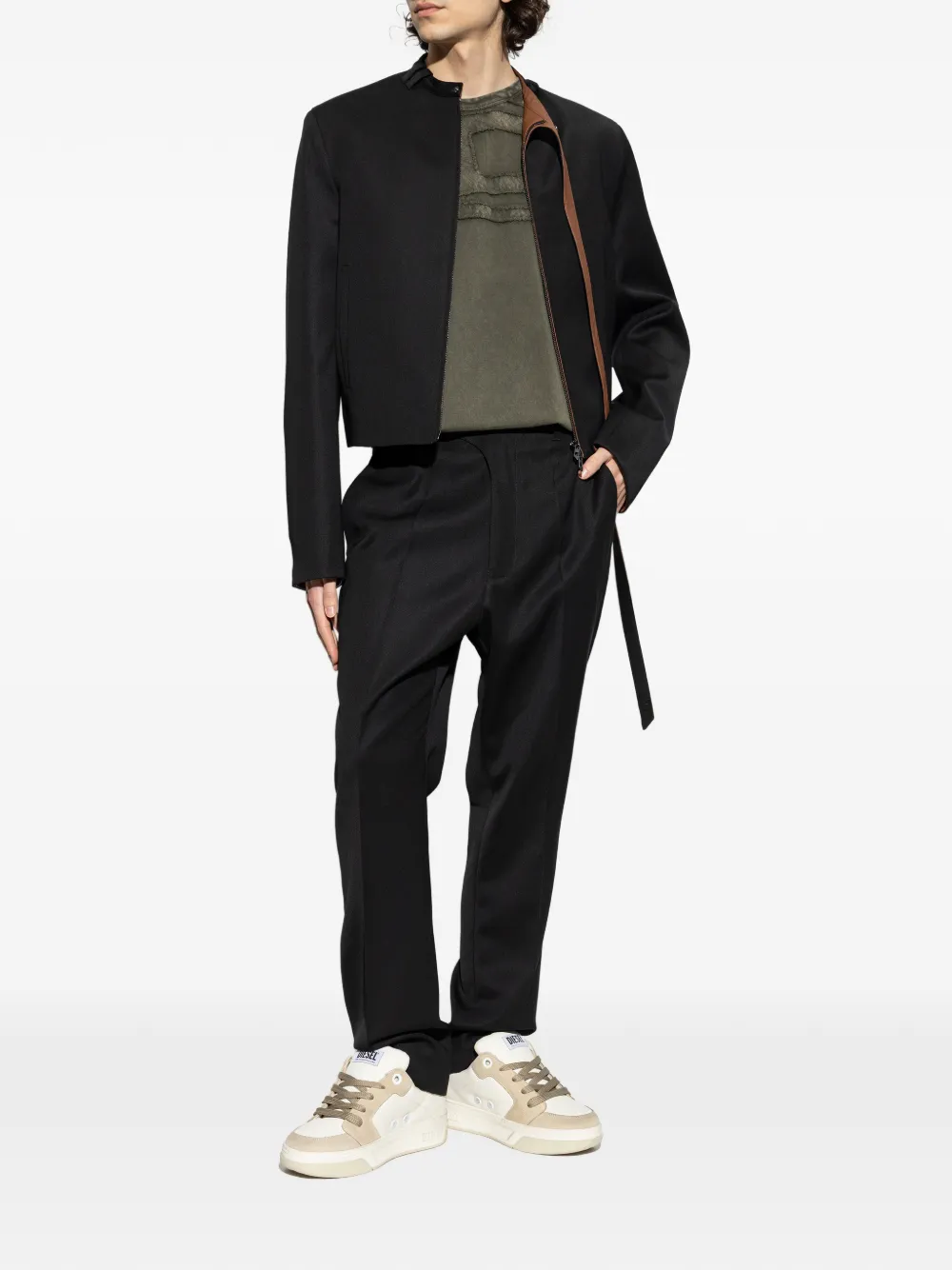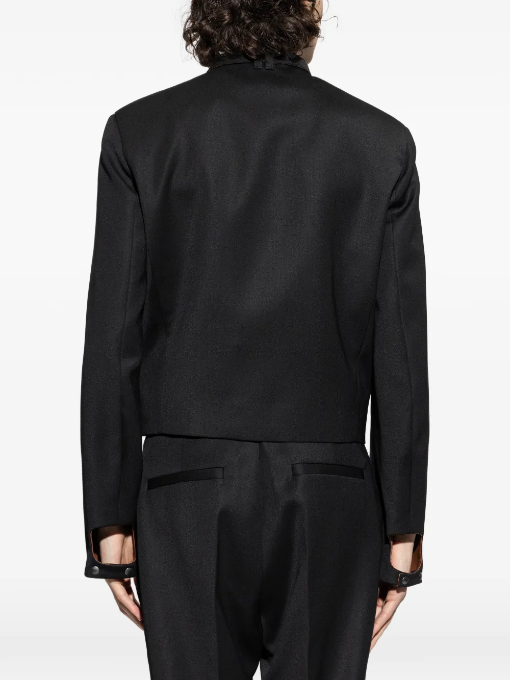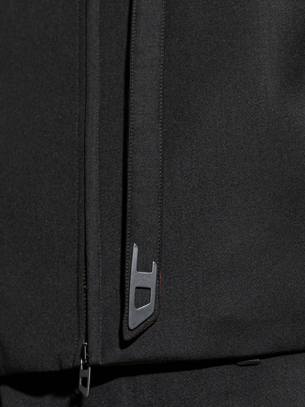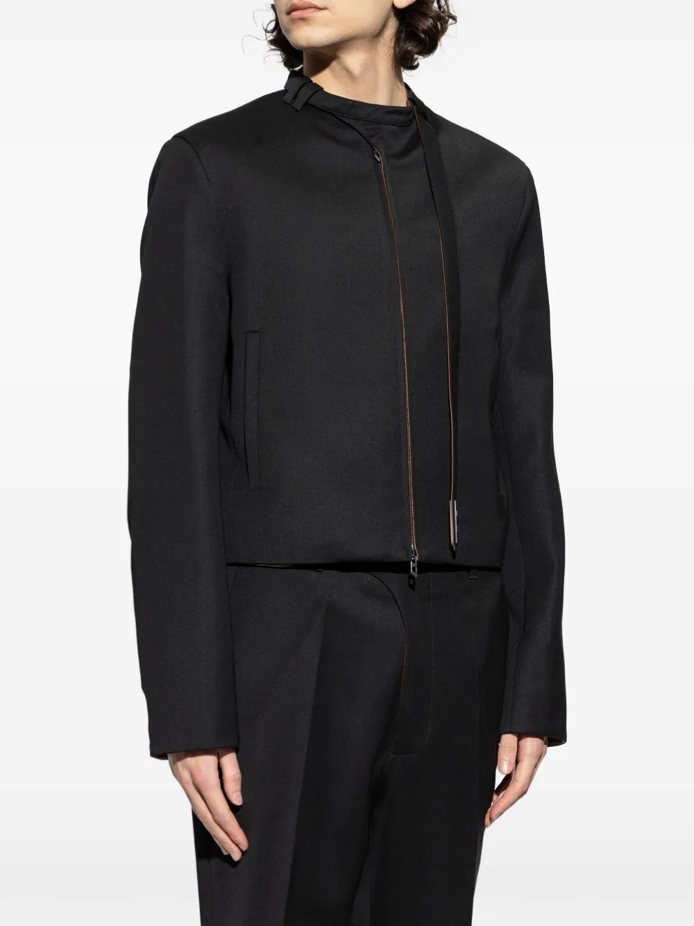 Черный укороченный топ с молнией, стойкой, длинными рукавами и вырезами