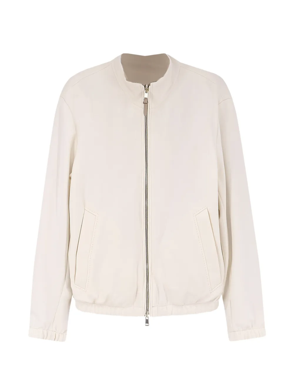 Бежевый, застежка-молния, прорезные карманы, эластичный низ