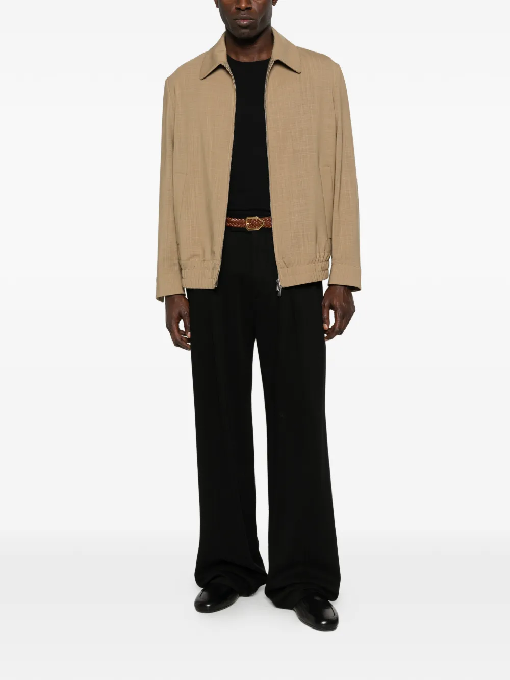 Бежевый, застежка-молния, карманы, с воротником